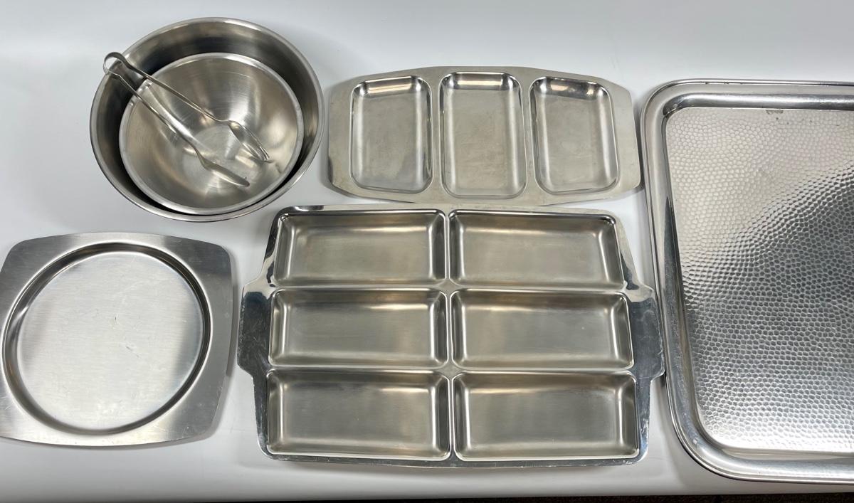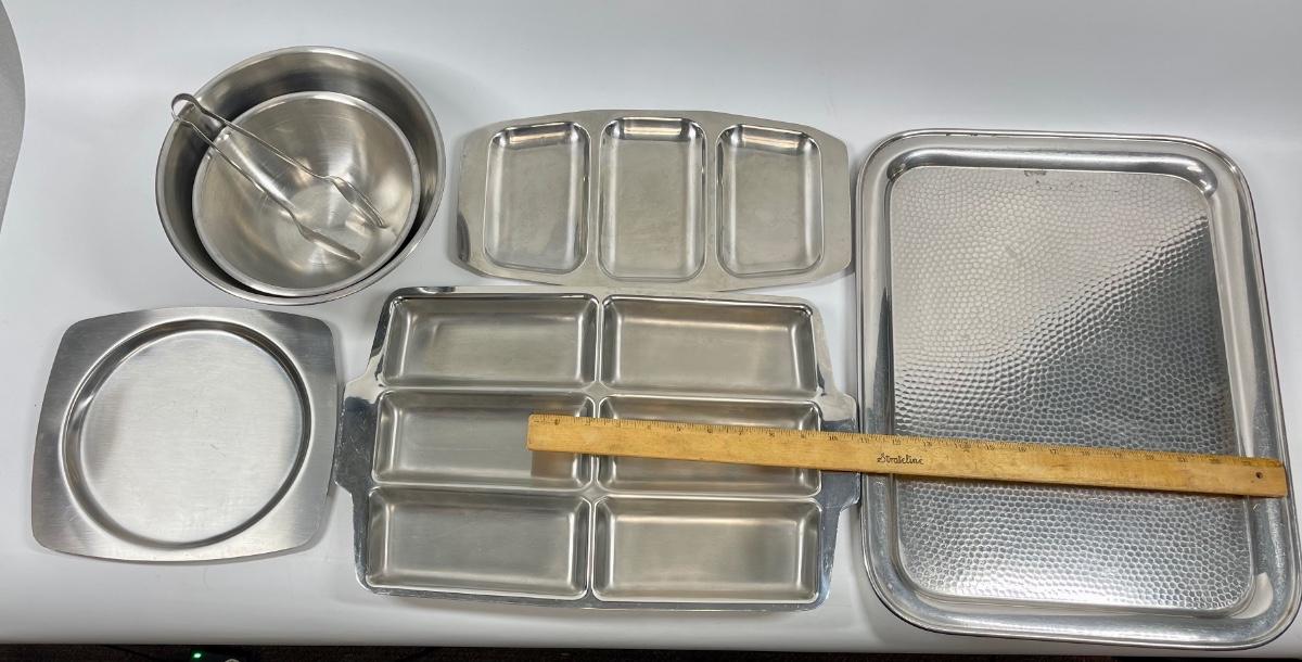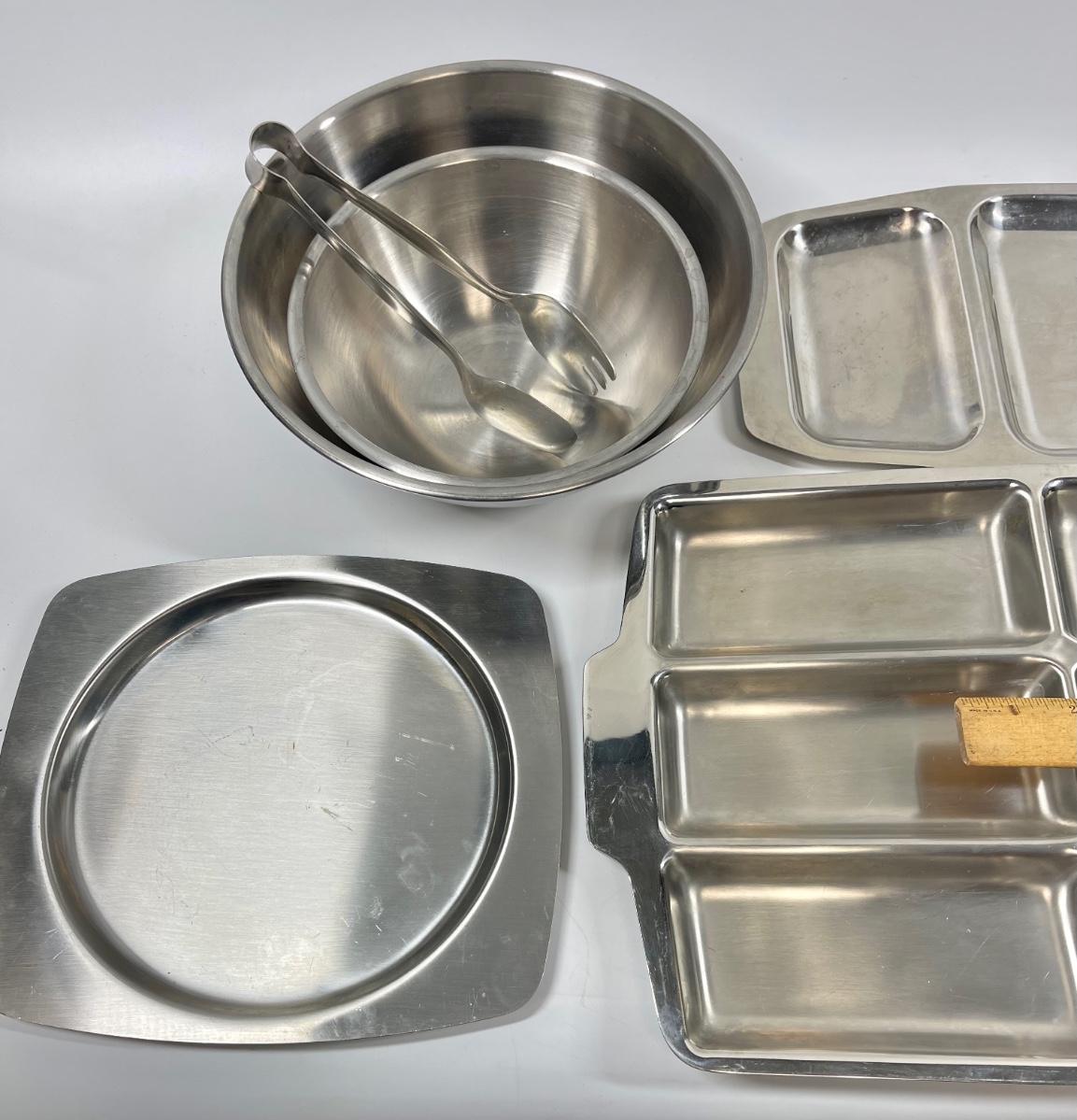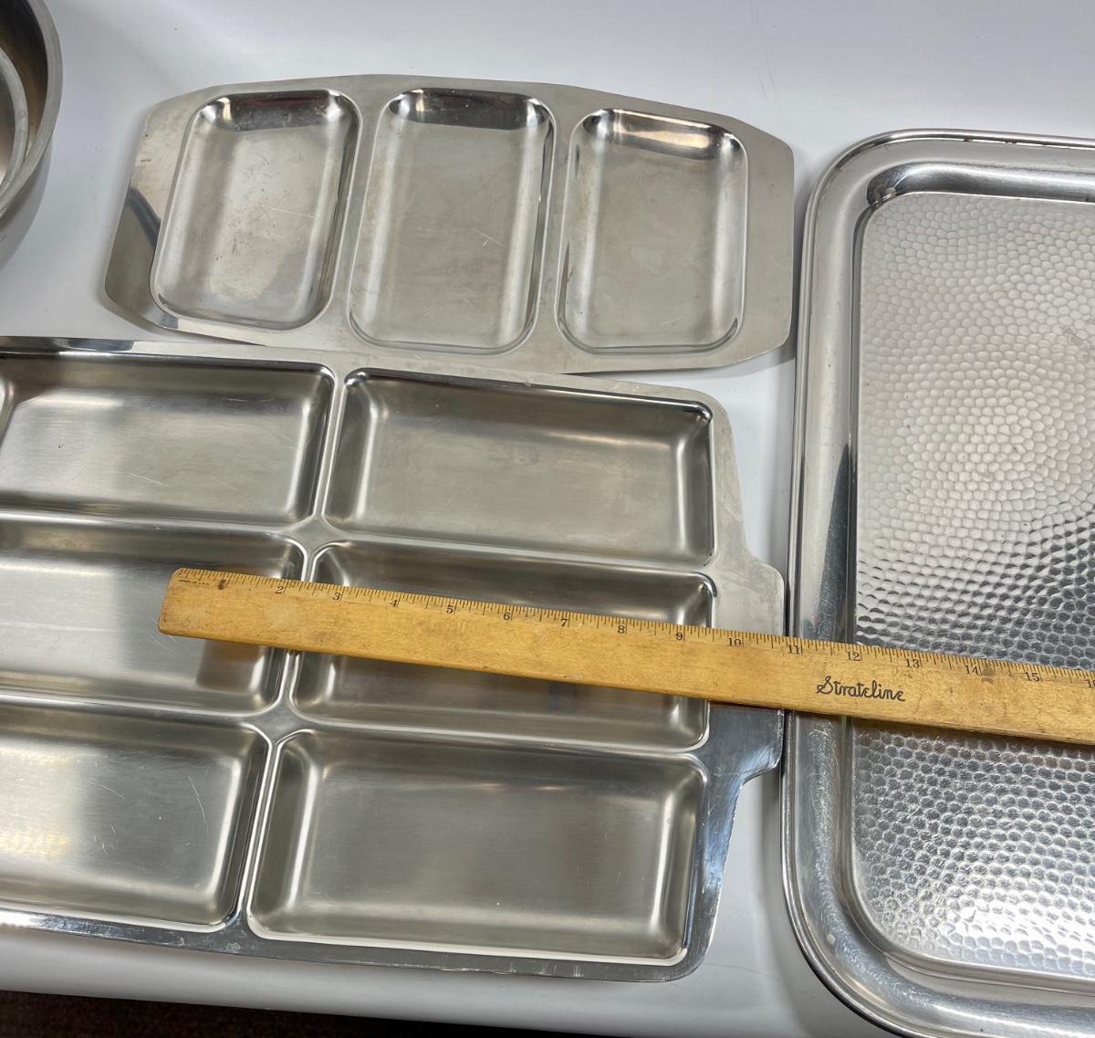 Mixed lot of metal serving platters and bowls stainless & aluminum