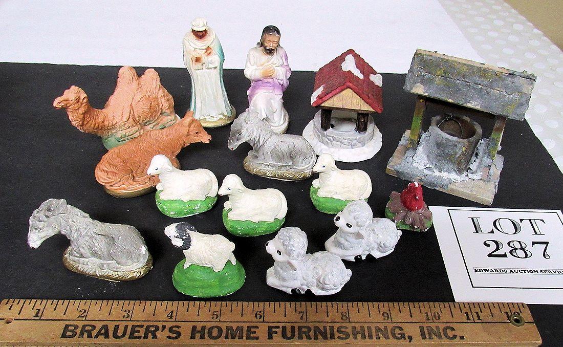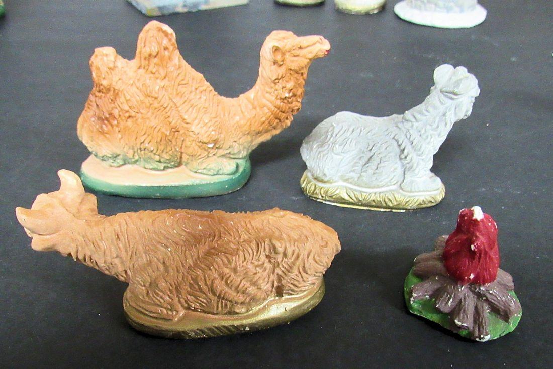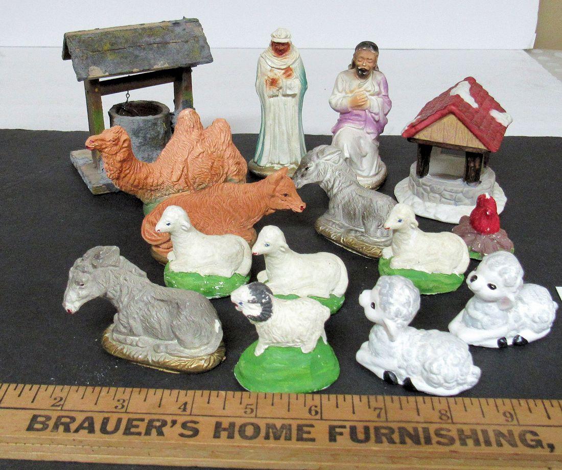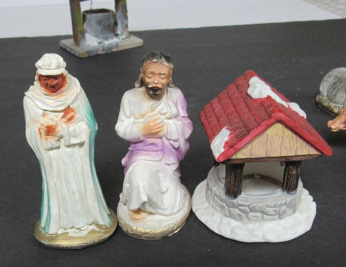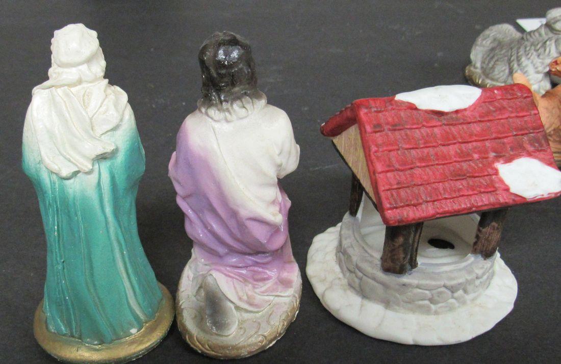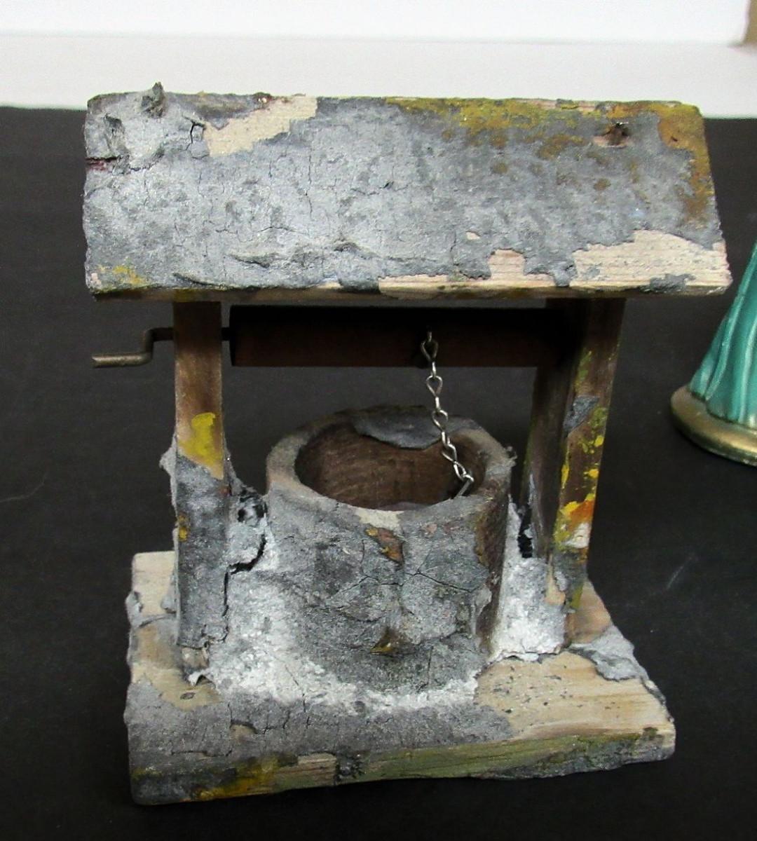 The antique German well is quite worn and crumbly. Some plaster figures have some wear and small chips.