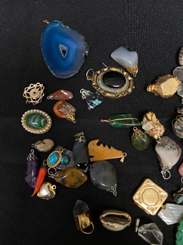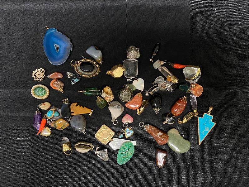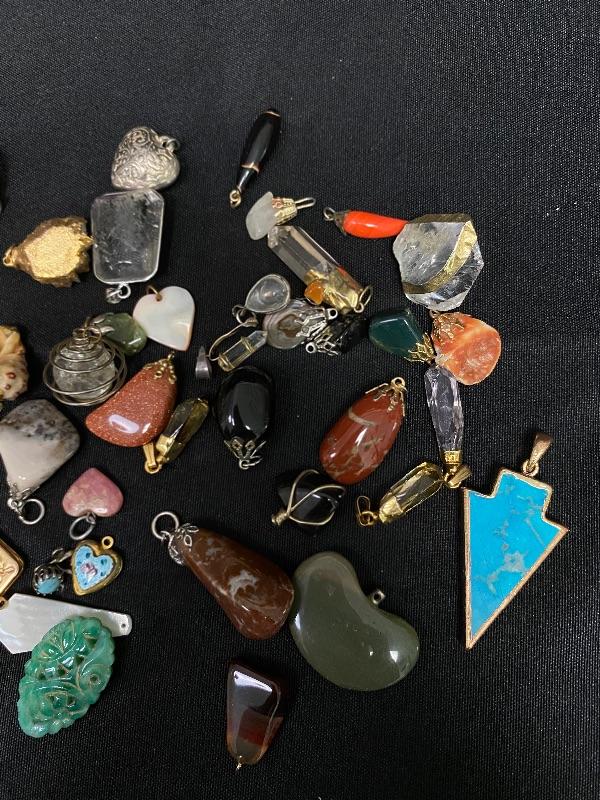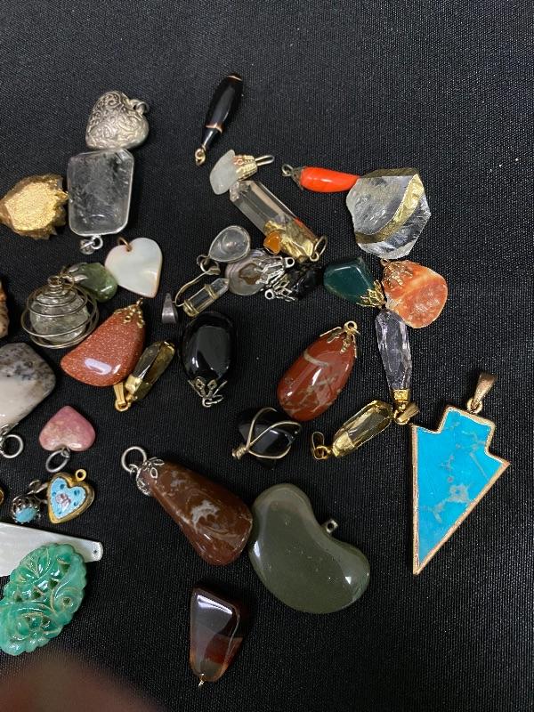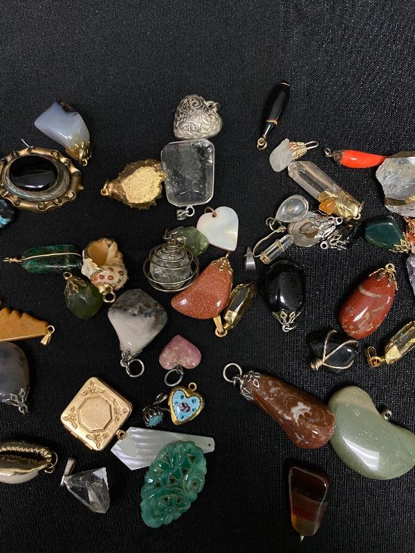 Mixed lot of pendants and charms. Most are stones and crystals.
