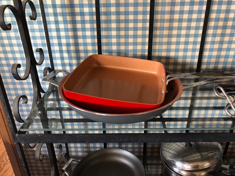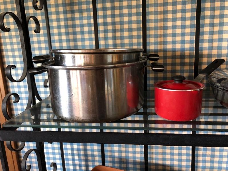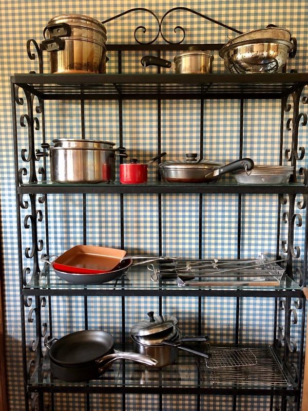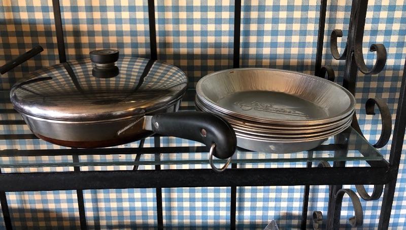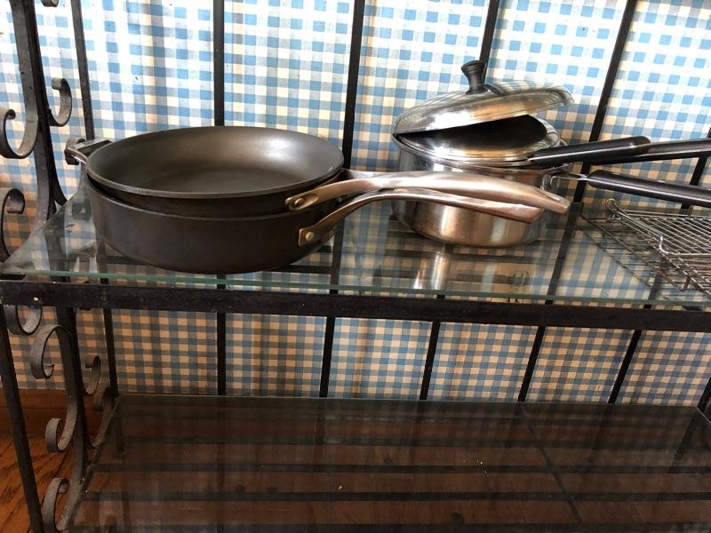 Mixed lot of pots and pans. All cookware photo’d is included. Good condition. **BAKERS RACK NOT INCLUDED**