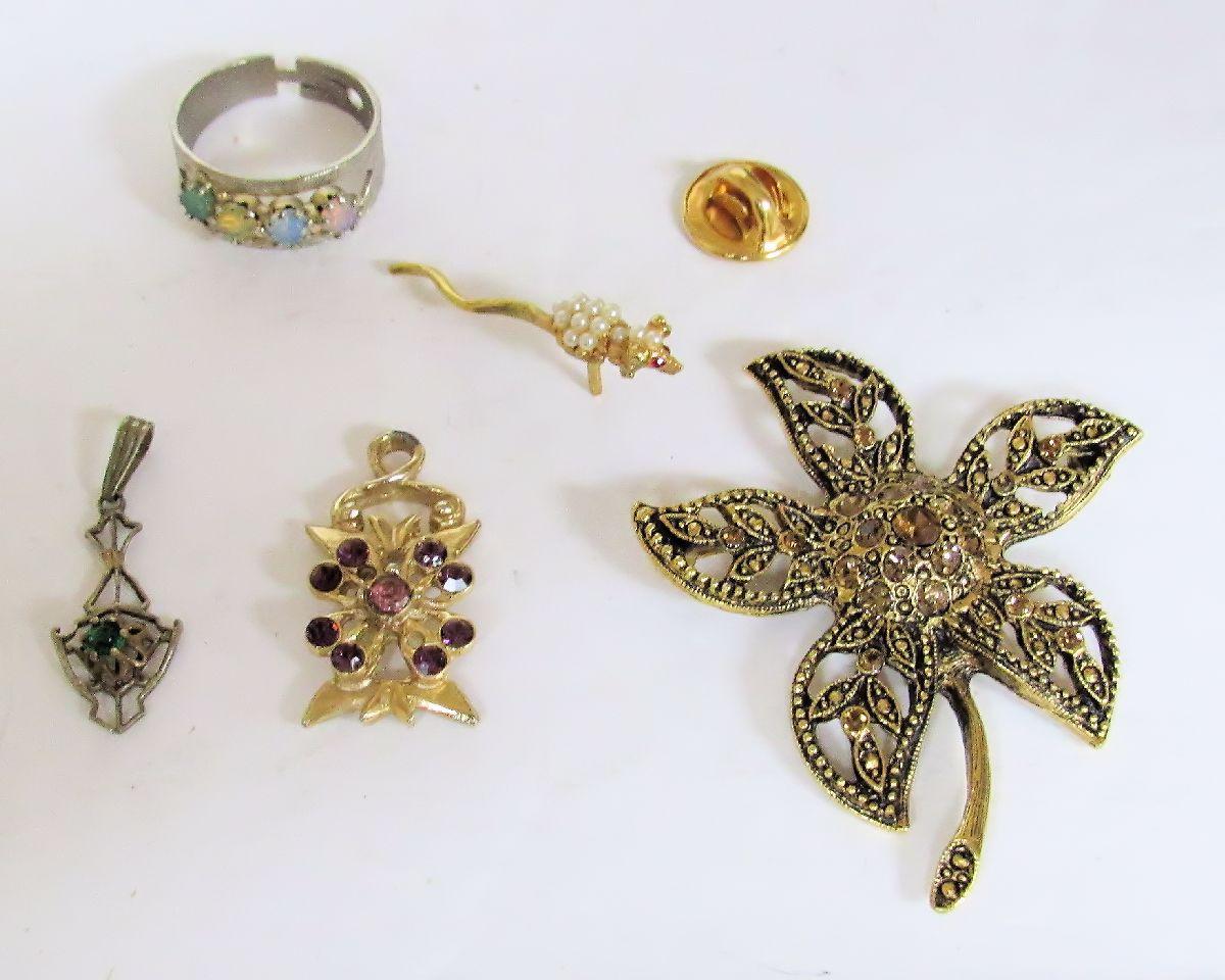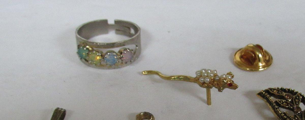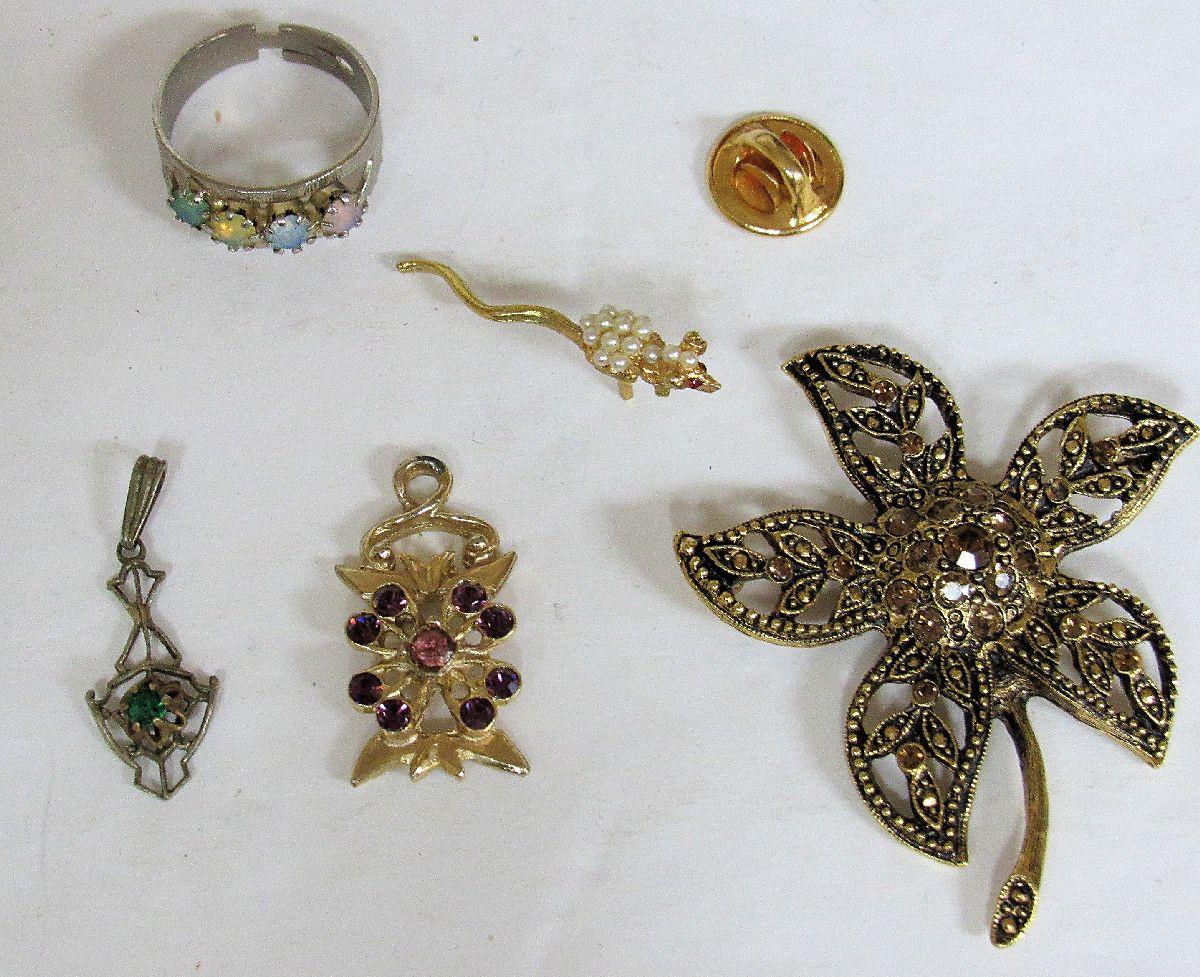Mixed Lot of Rhinestone Jewelry and Costume Ring, Cute Little Mouse Lapel Pin