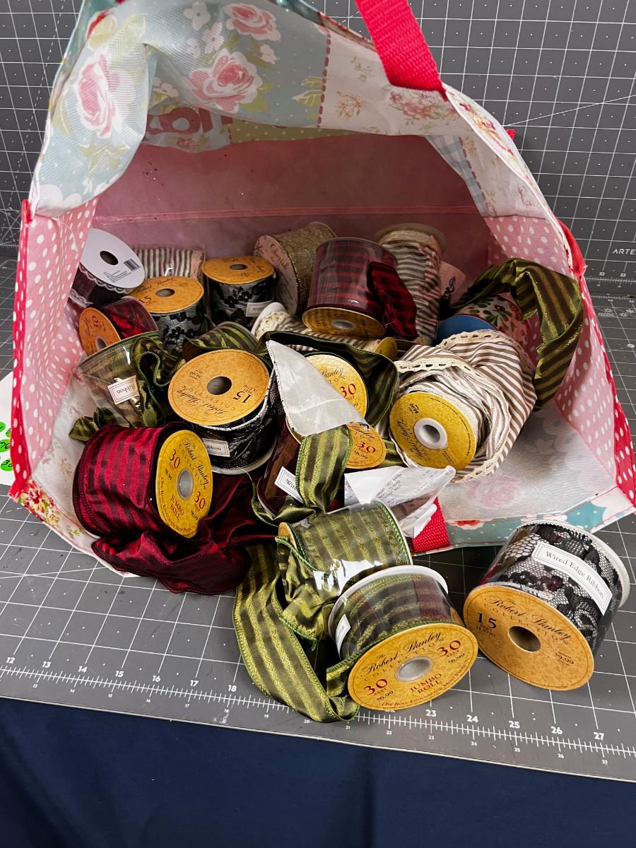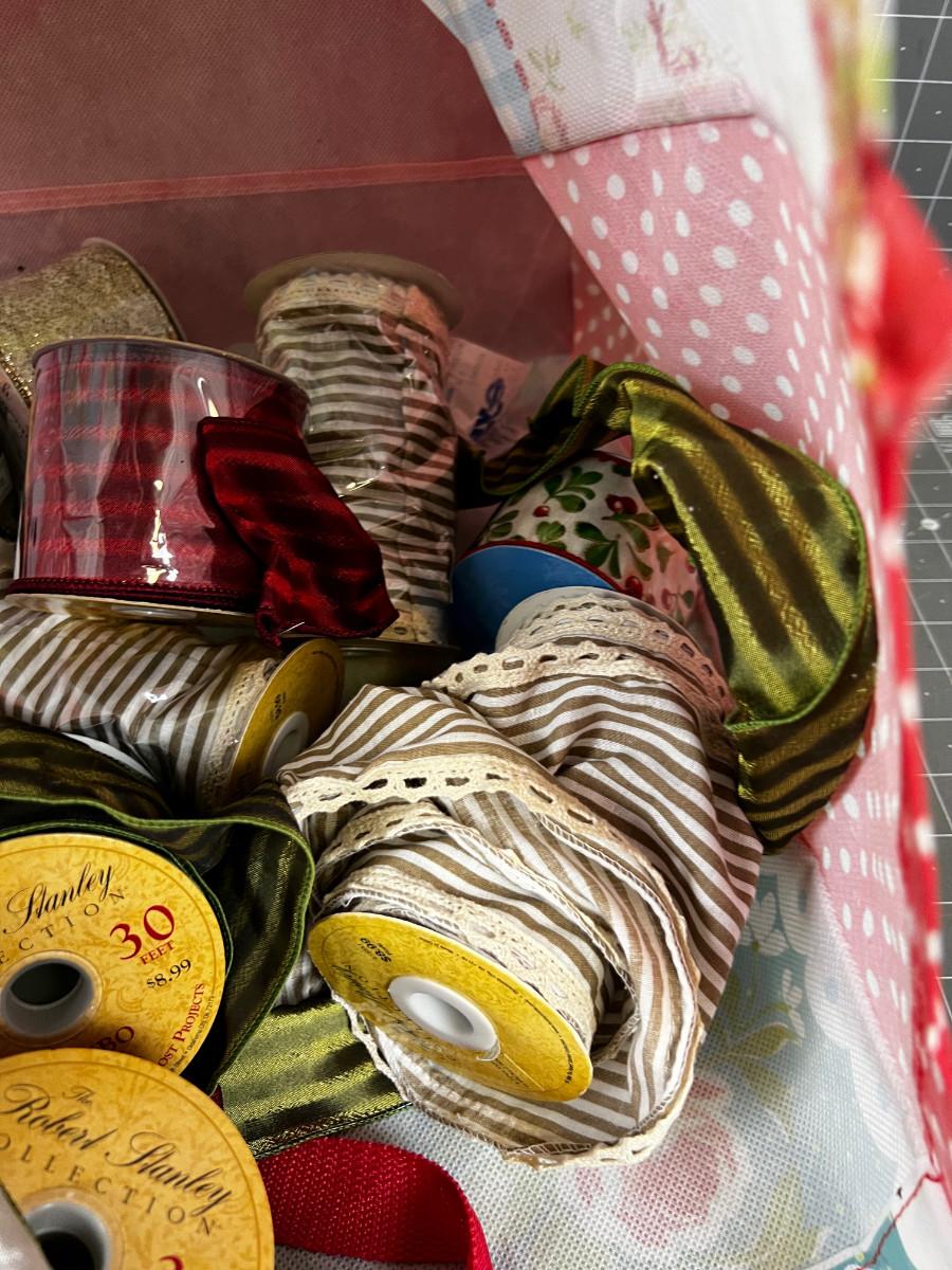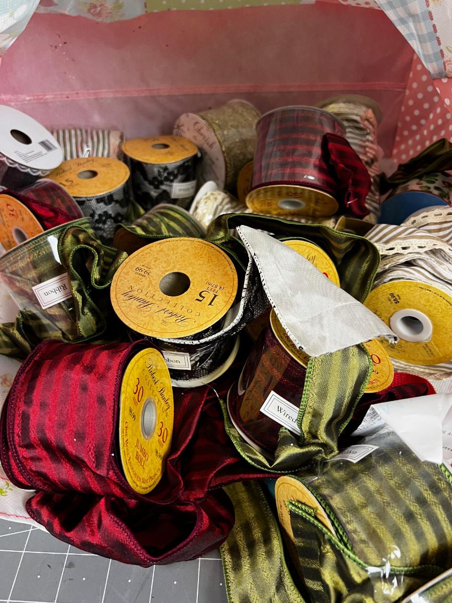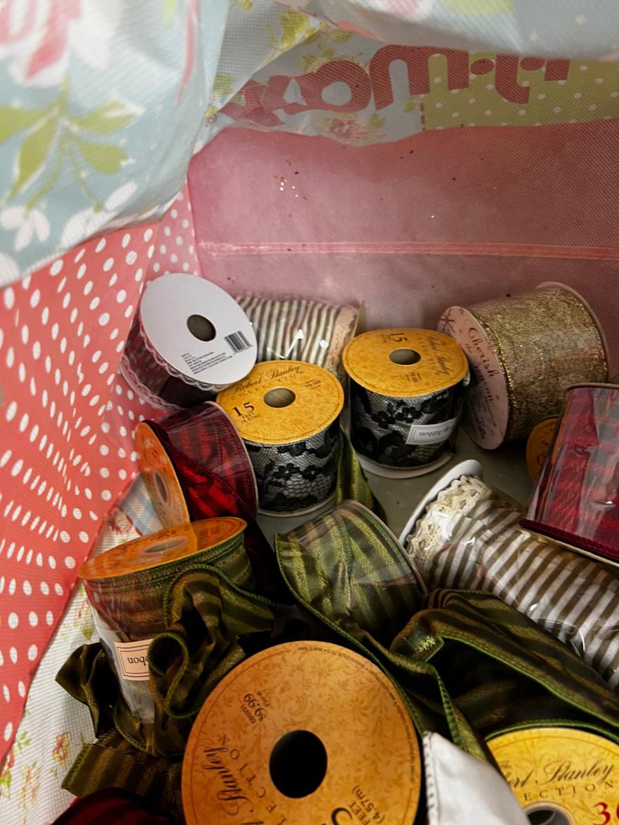Mixed Lot of Ribbon Green, Red Stripped in TJMAXX Bag
