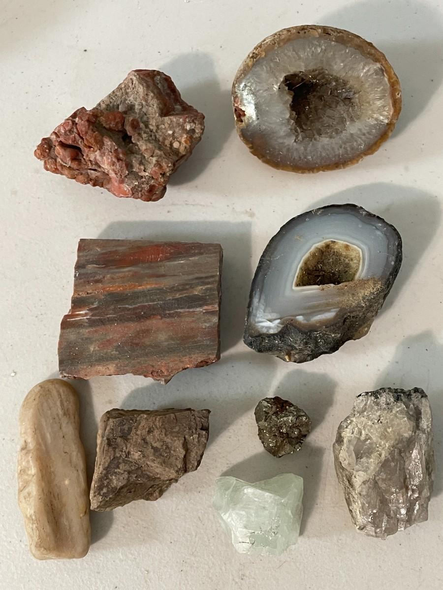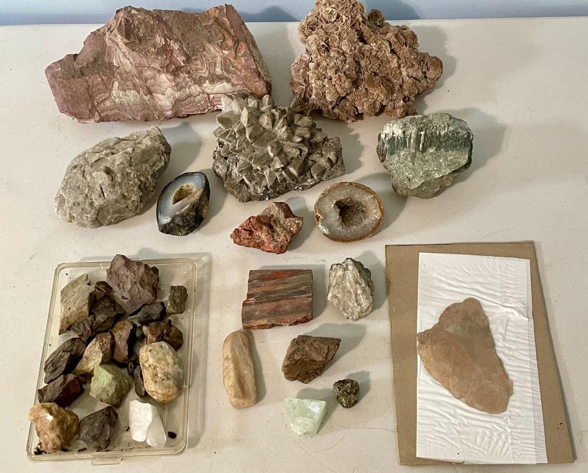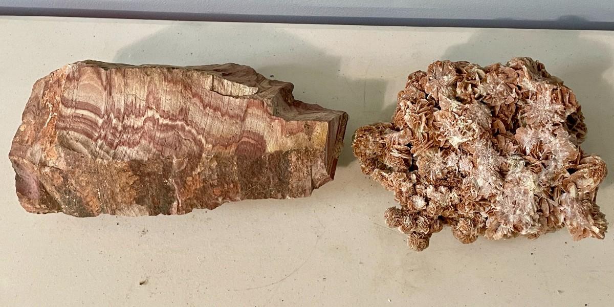 Includes Desert Rose Gypsum, Dogtooth Calcite, geodes and others.