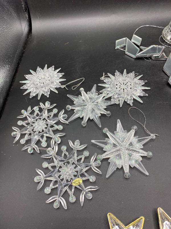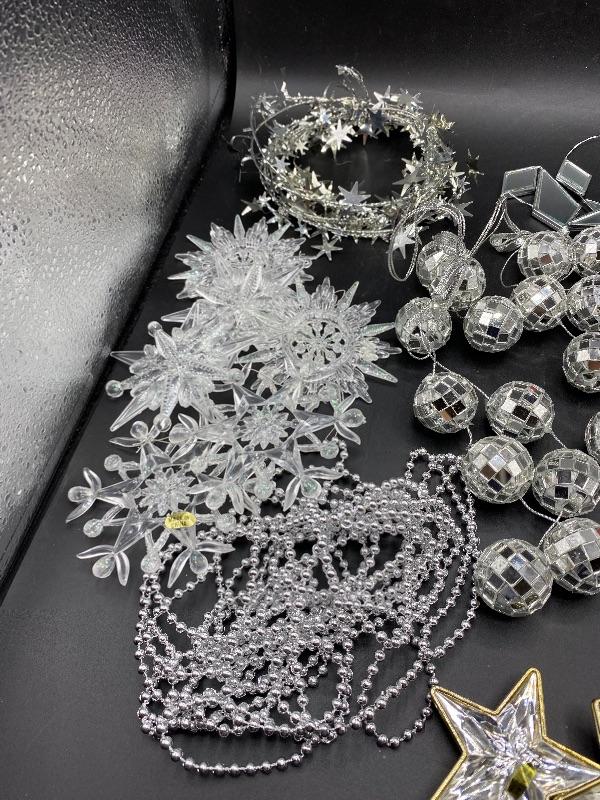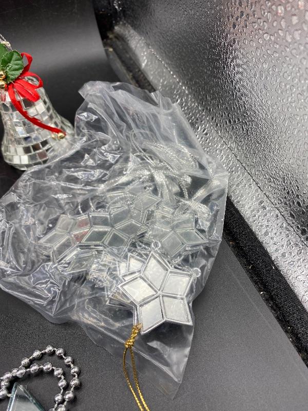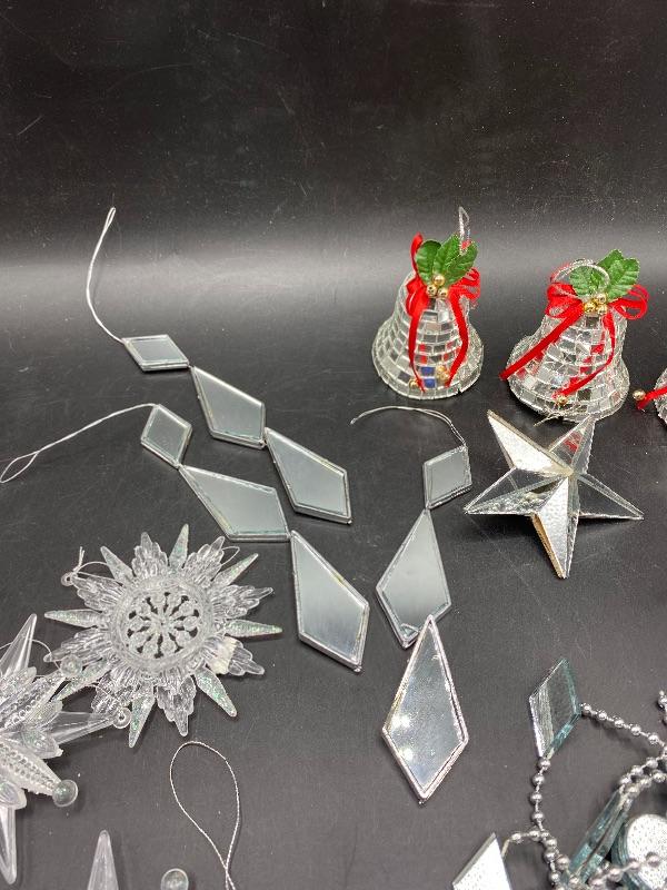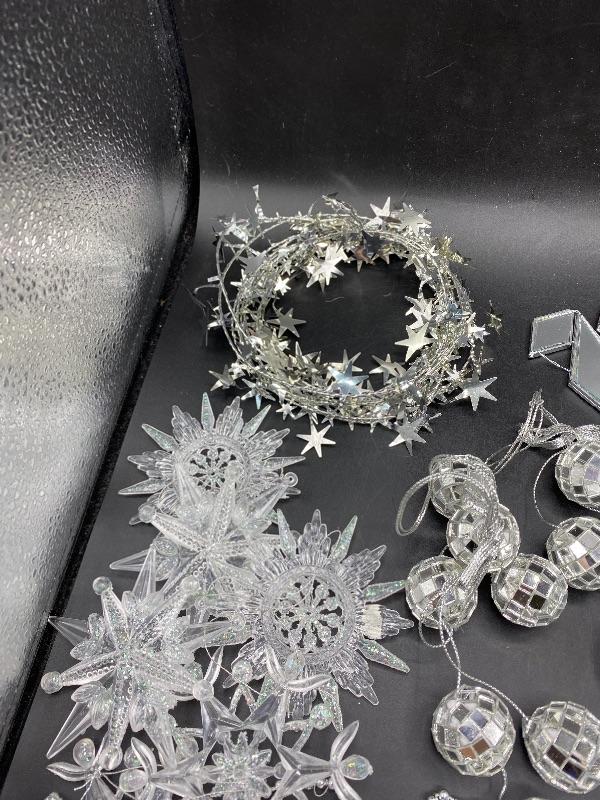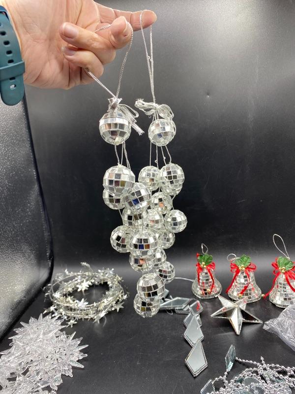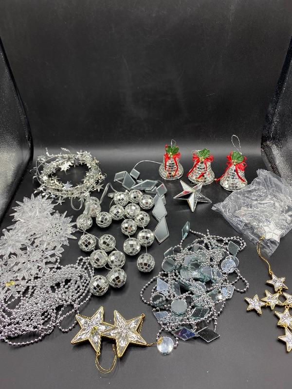 Mixed lot of silver and reflective Christmas tree ornaments. Everything pictured included. Add some sparkle to any tree.