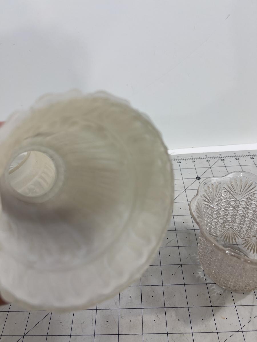 Used. Clear and Frosted. Good selection for vintage lighting. Dealers this ones for you.