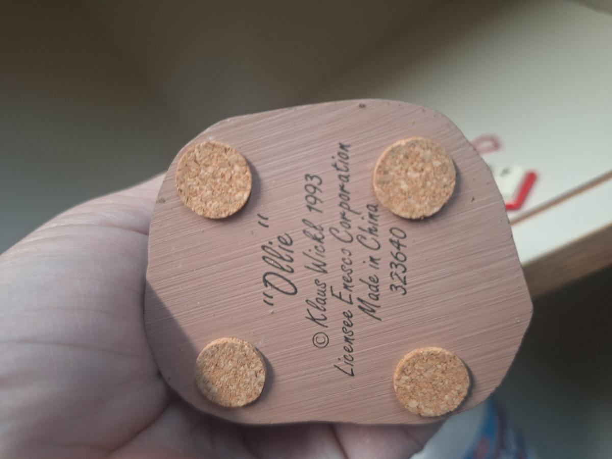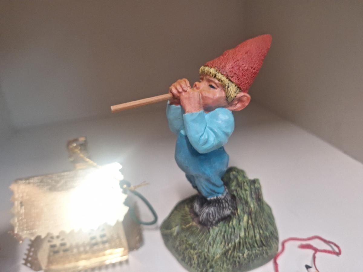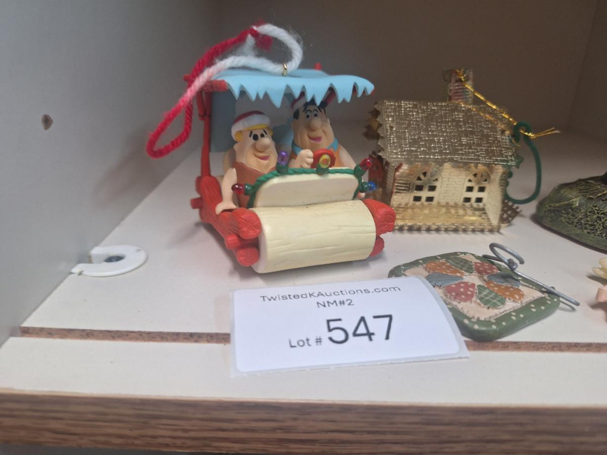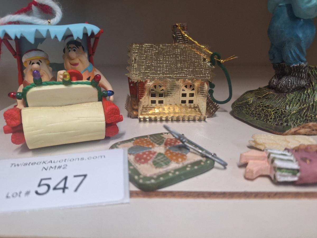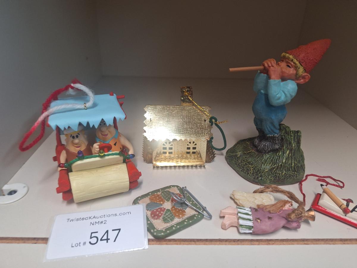 mixed lot of smalls- 1993 Enesco Klas Wickl Ollie gnome, hallmark Fred Flintstone ornament and some other ornaments.