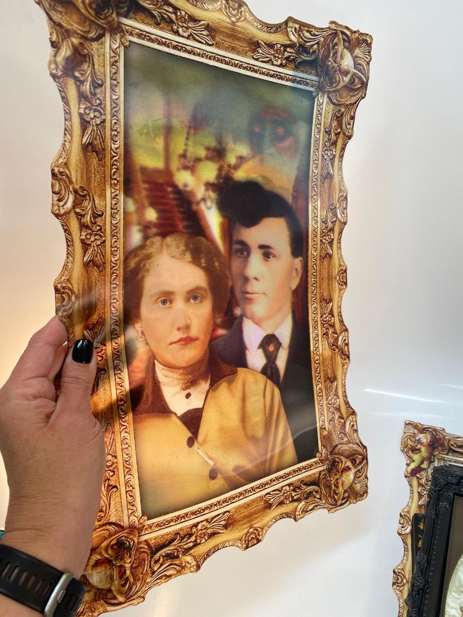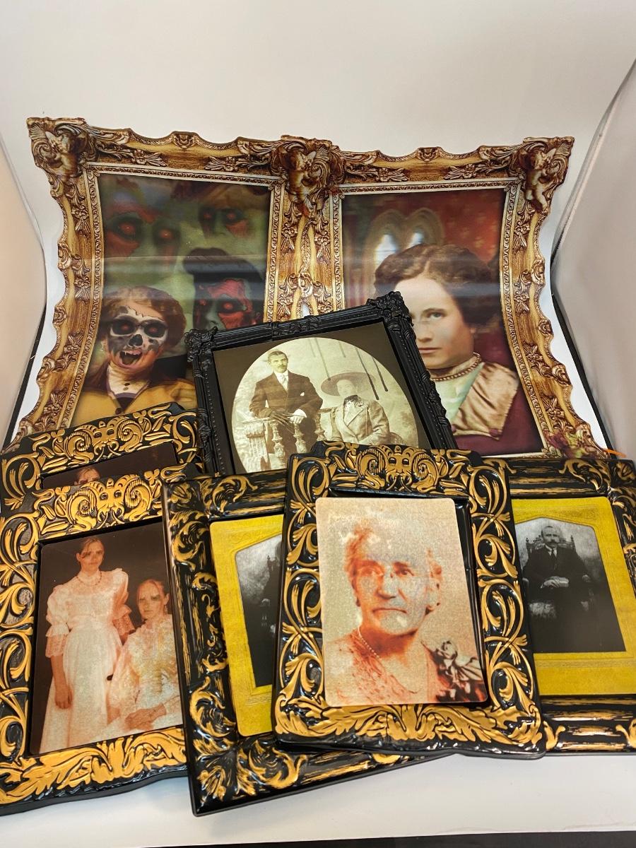 Mixed Lot of Spooky Halloween Holographic Changing Photos. Look normal from one angle and spooky from the other. Plastic frames and art.