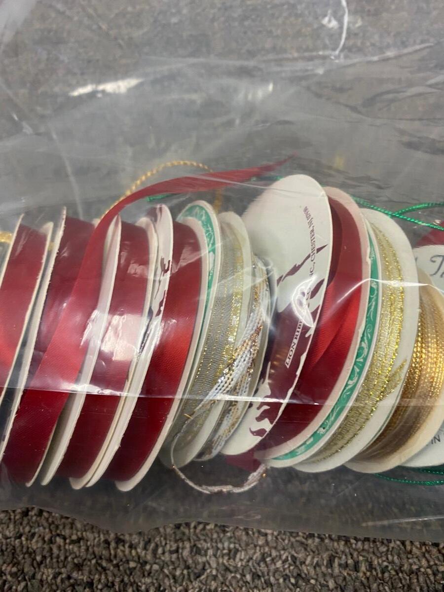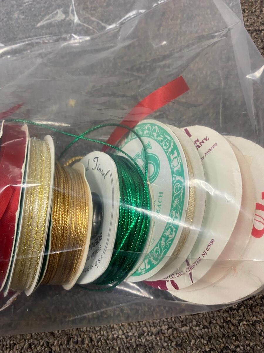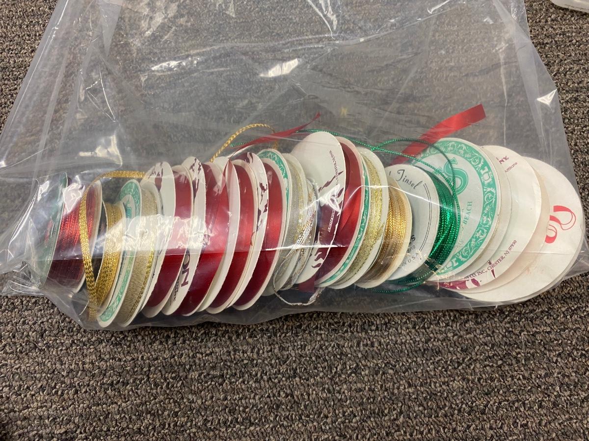 Mixed lot of thin fabric ribbon. Great for sewing or craft projects. Some spools are flat ribbon, some are more of a thin cord type. Spools are mostly full or unused.