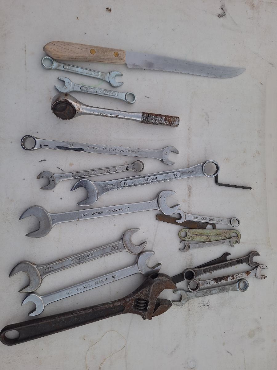we don't know why you find a good kitchen knife in a box of tool, probably the same reason there is sometimes a screwdriver and pliers in the silverware drawer..