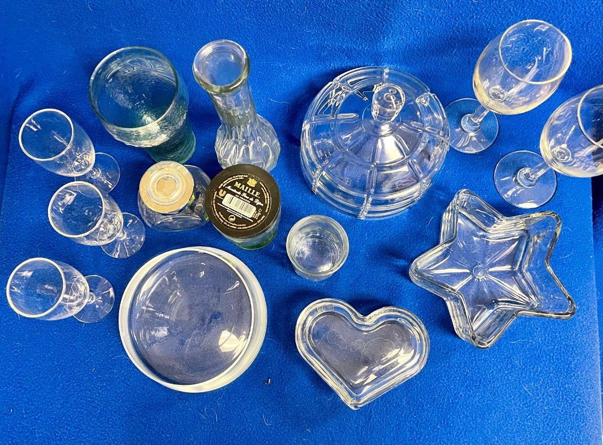 Mixed Lot of Various Clear Glass Decor Pieces Drink Glasses Trinket Dishes