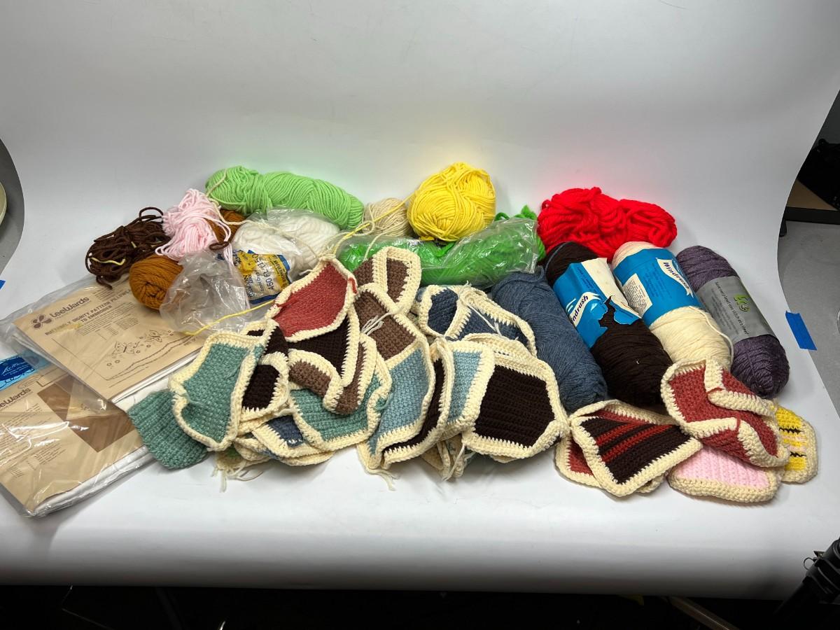 Mixed Lot of Various Colors of Yarn Crochet Squares Knitting Supplies and More
