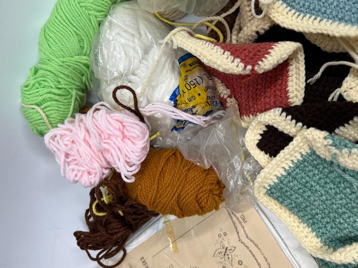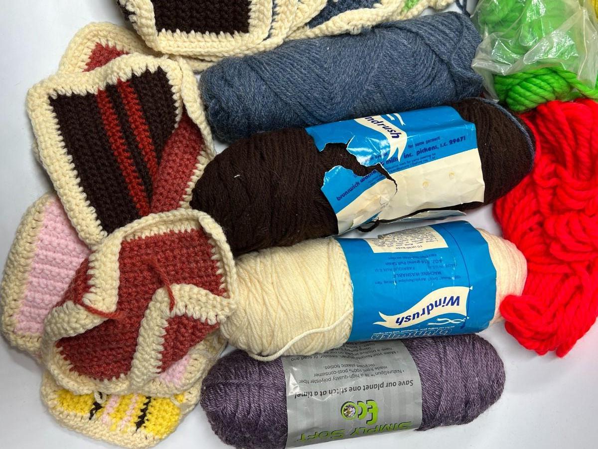 Mixed Lot of Various Colors of Yarn Crochet Squares Knitting Supplies and More. Comes with everything pictured.
