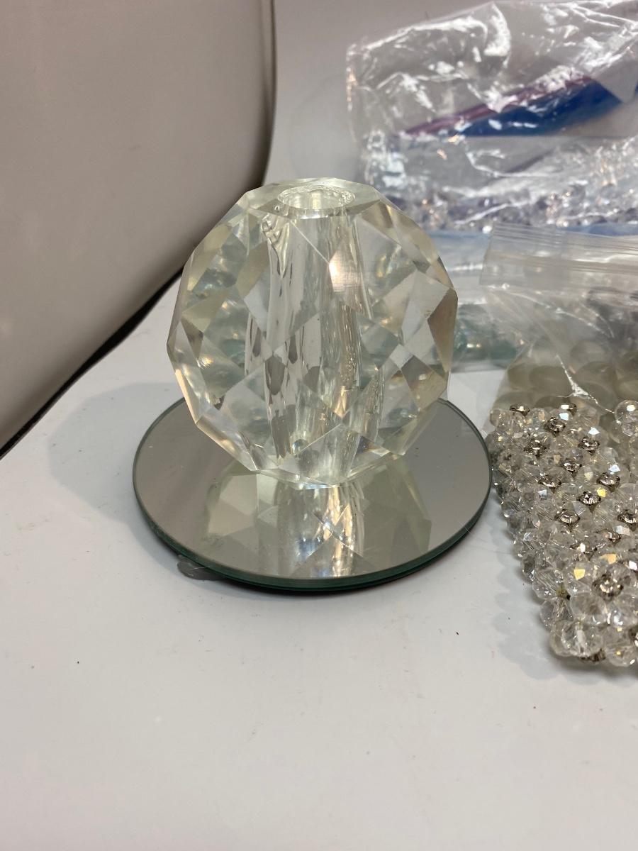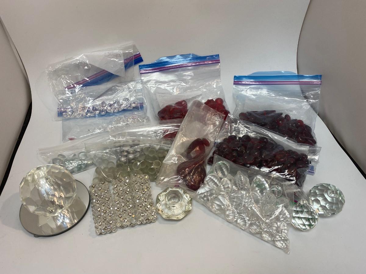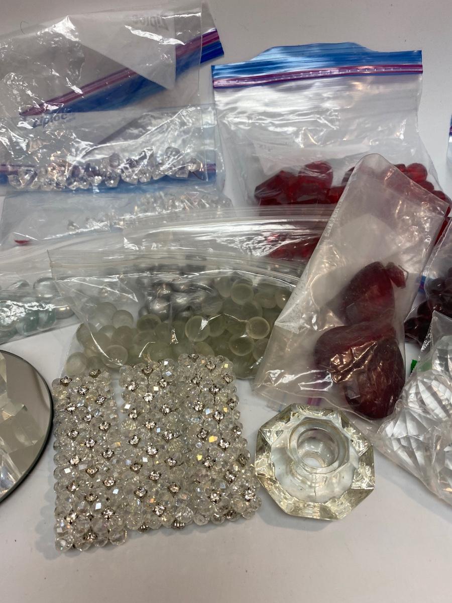 Mixed Lot of Various Prisms & Decorative Flat Marbles. Great for vases and crafts. Mix of plastic and glass pieces. Two small mirrors included, great for candles.