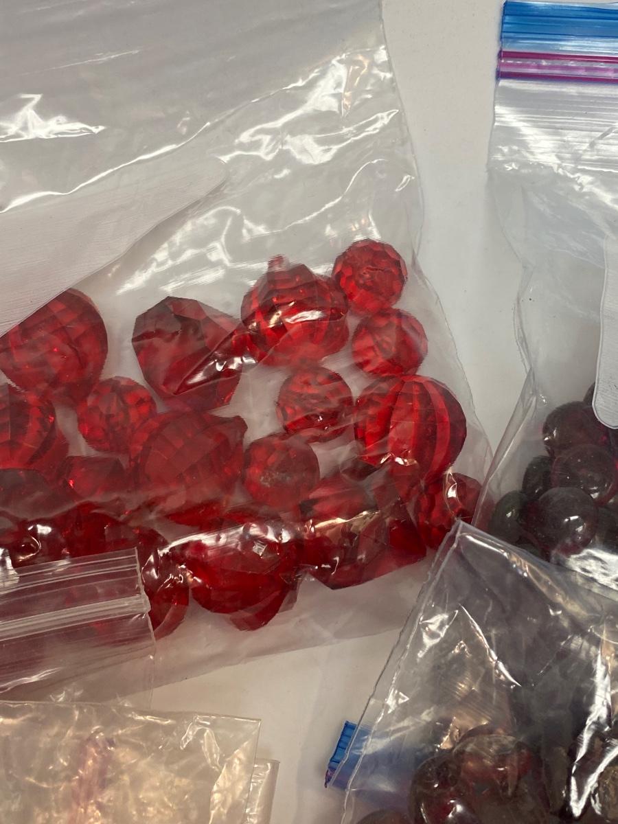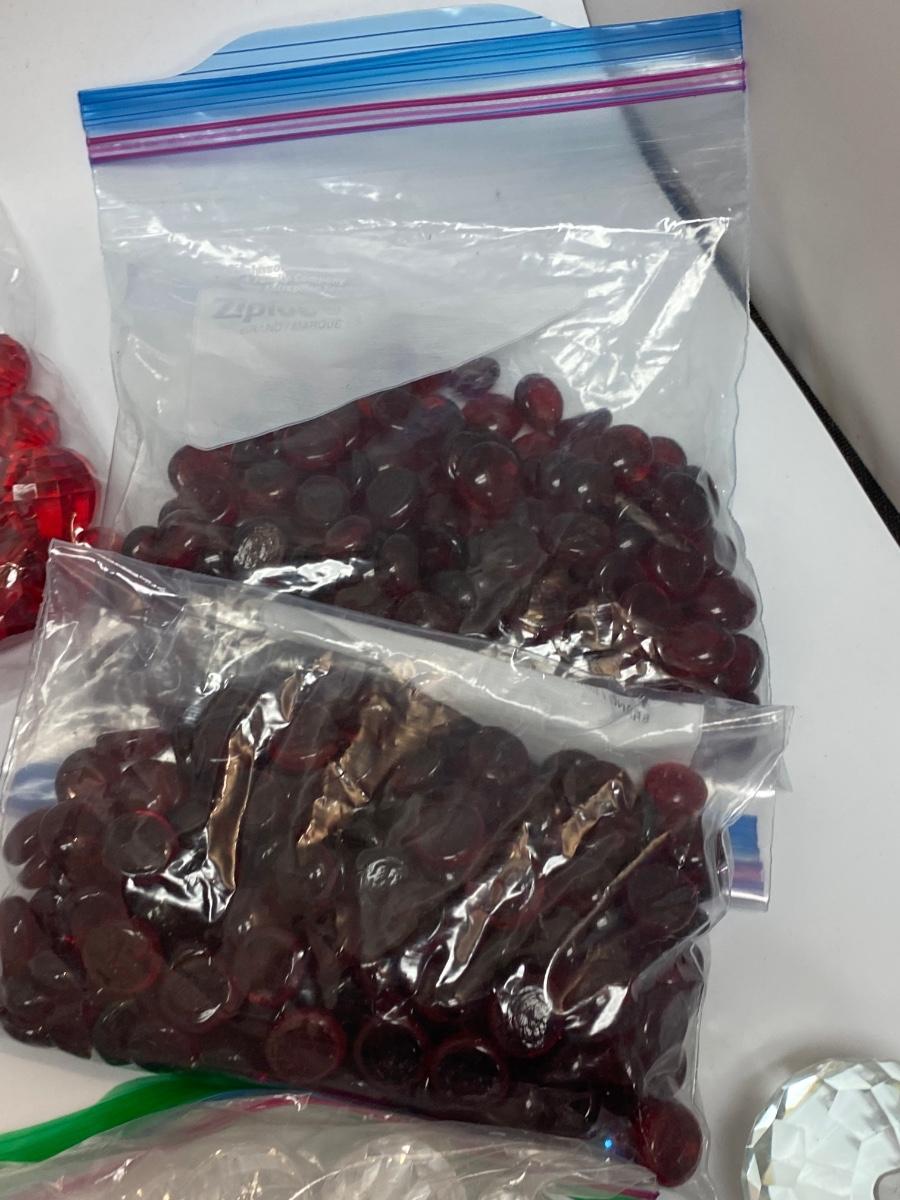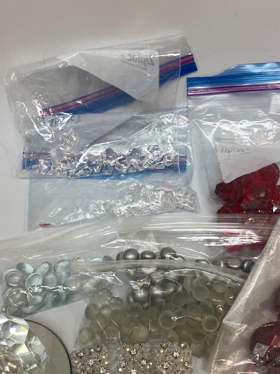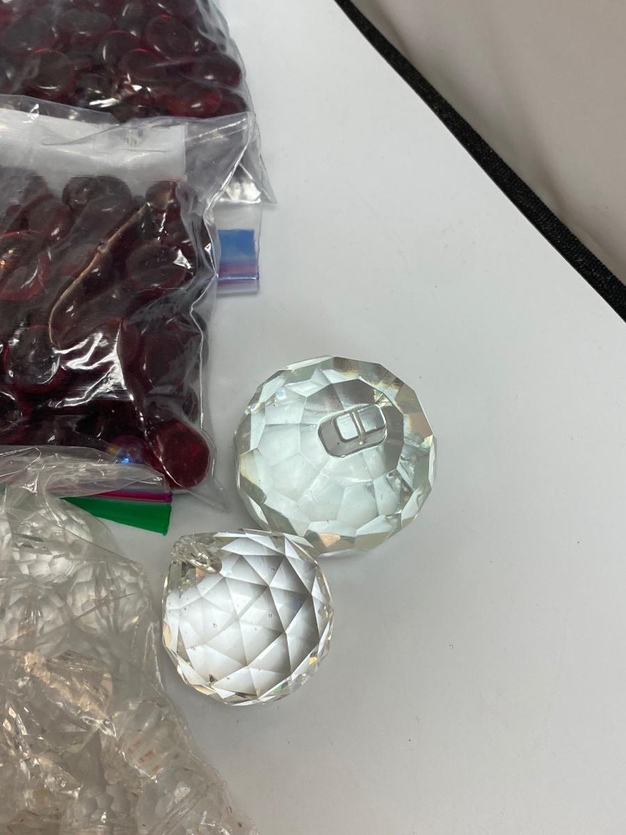 Mixed Lot of Various Prisms & Decorative Flat Marbles. Great for vases and crafts. Mix of plastic and glass pieces. Two small mirrors included, great for candles.