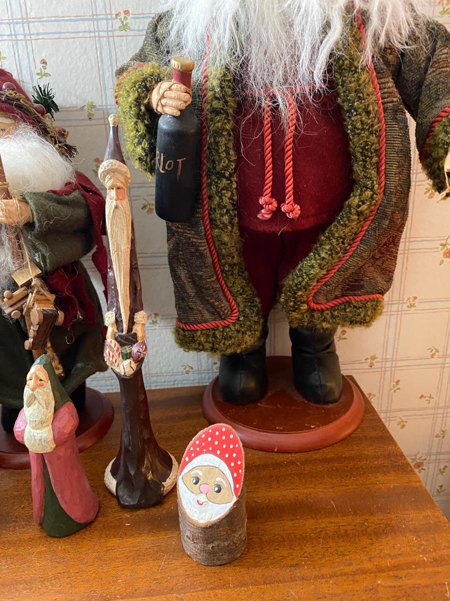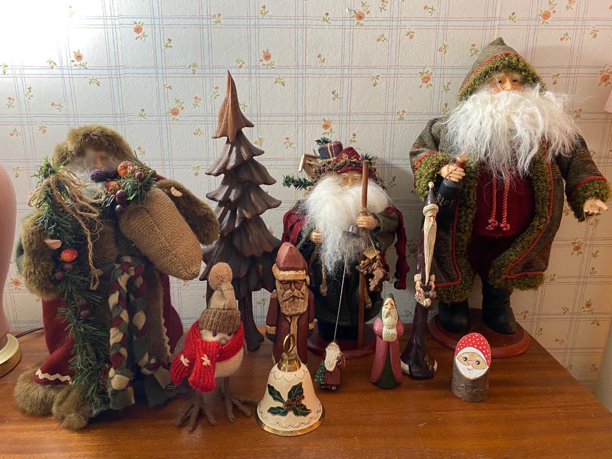 Mixed Lot of Various Rustic Styled Santa Claus St. Nick Figurines Holiday Decor. Good condition. 16" size and smaller.