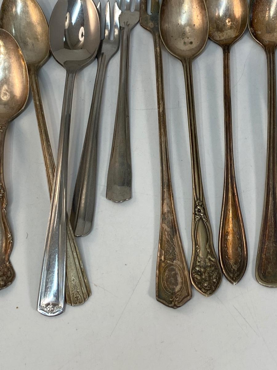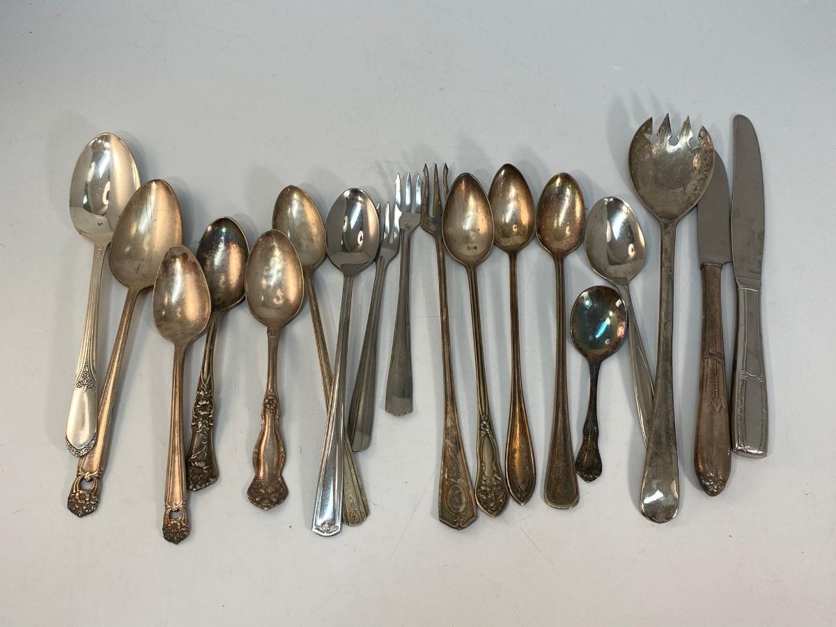 Mixed Lot of Various Silver Plate Flatware Utensils. Different patterns. Great for use or crafting.