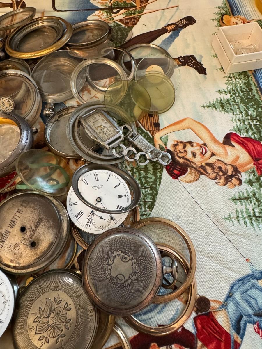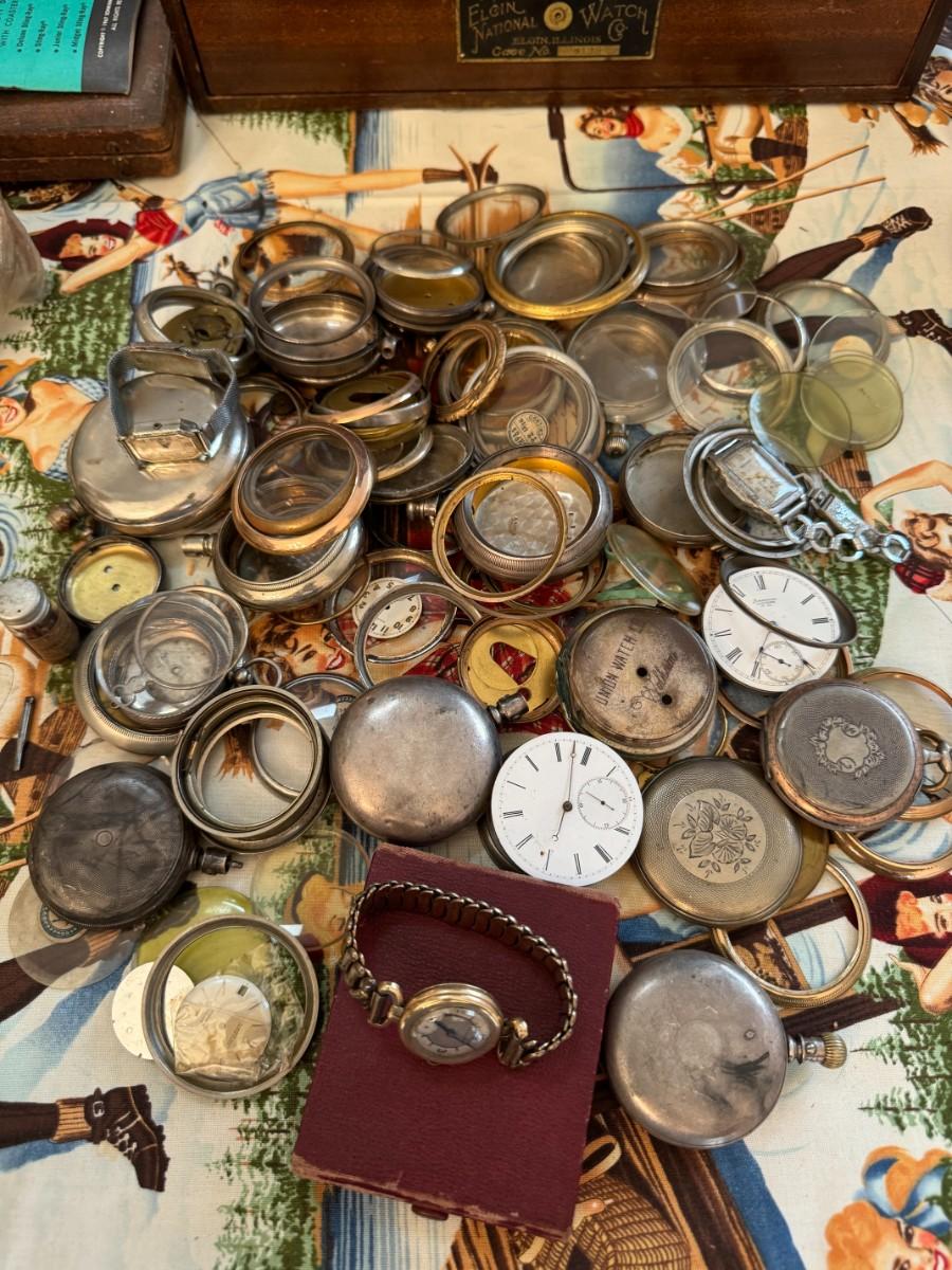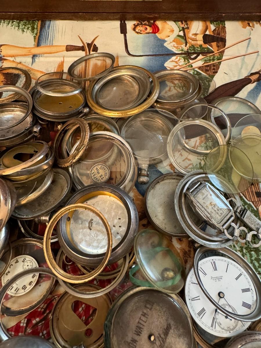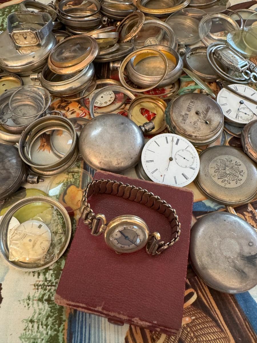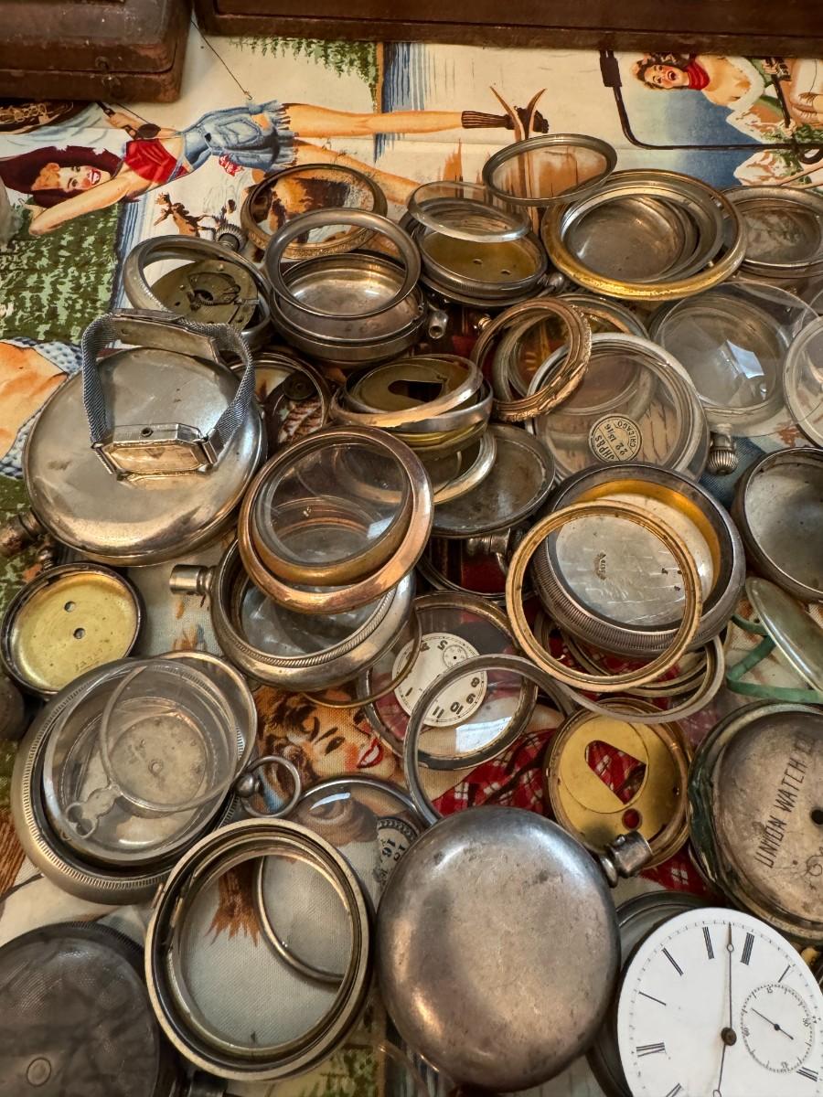 Very interesting lot with a great selection of cases, movements, crystals and other
