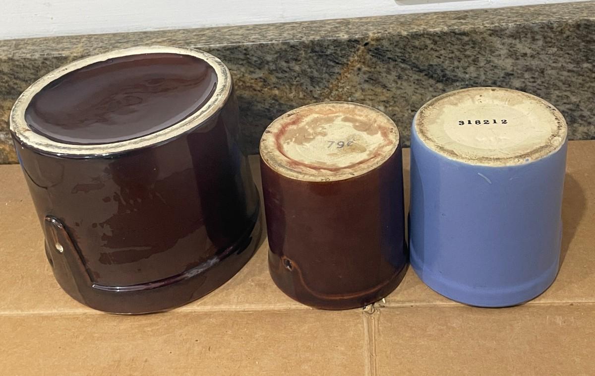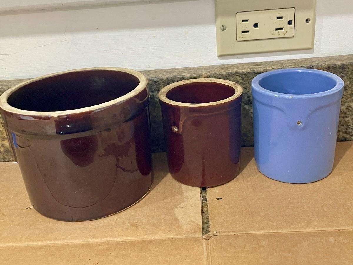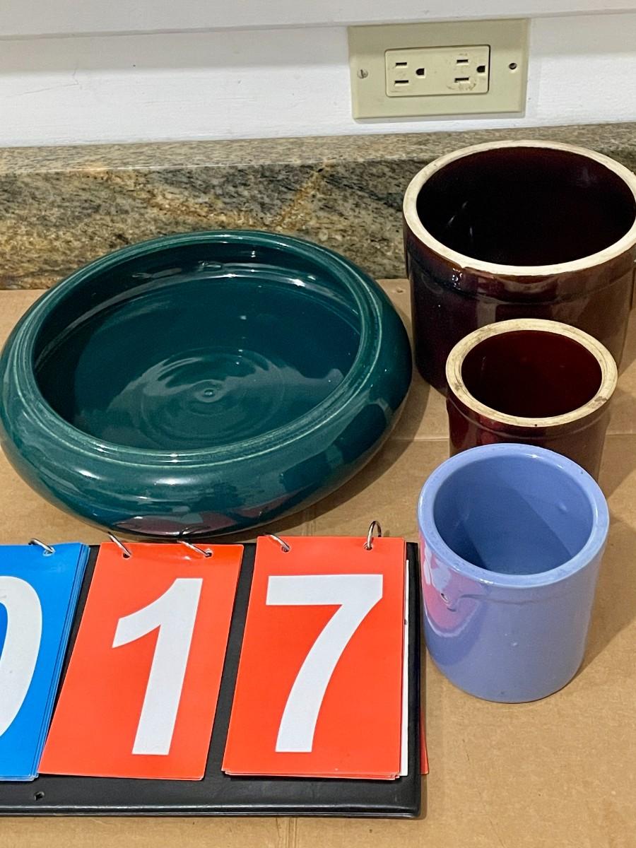 Mixed lot of vintage crocks and a hand-thrown serving bowl