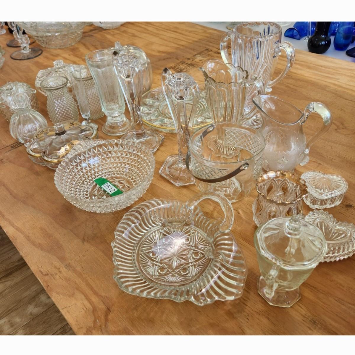Mixed lot of vintage Glassware Vases, Plates, Covered Dishes, Pitchers and More