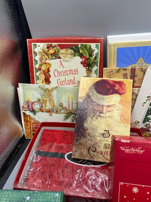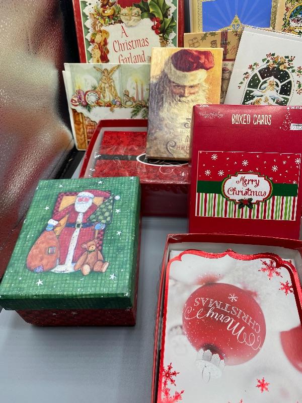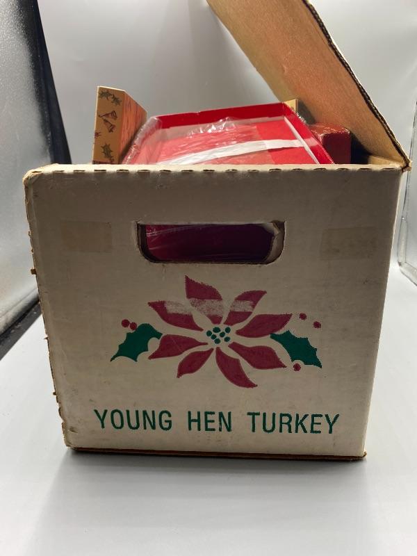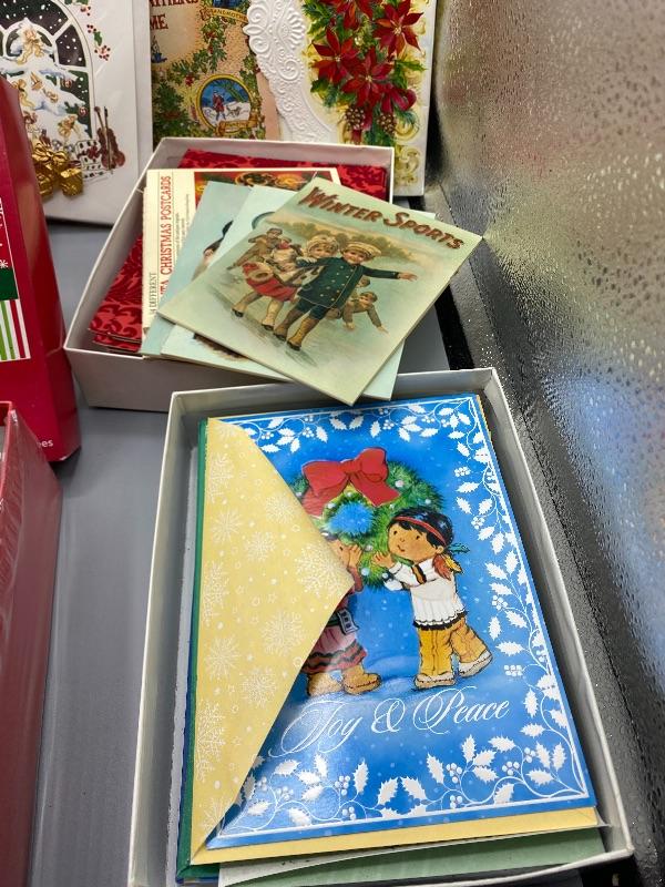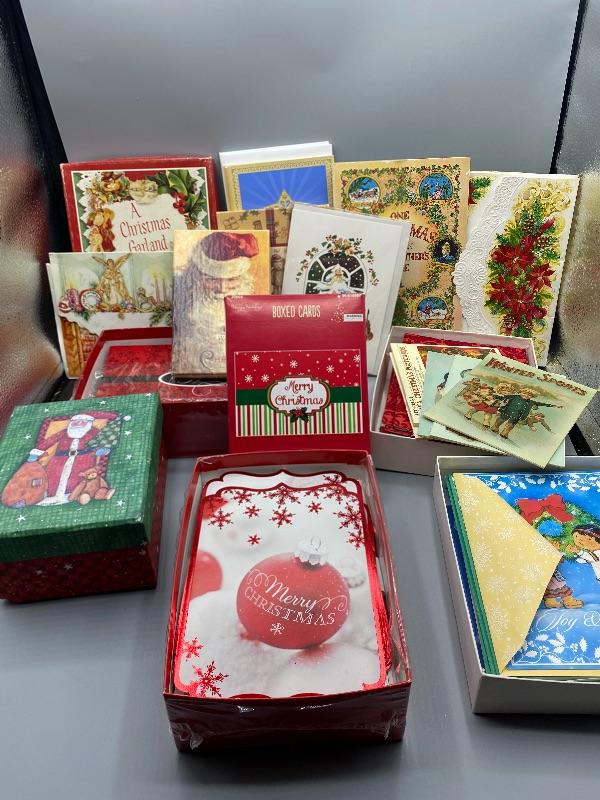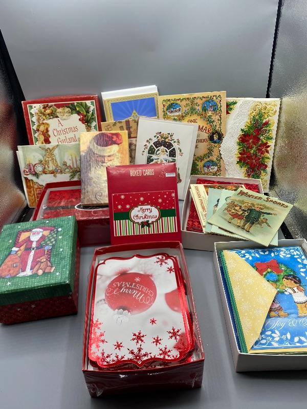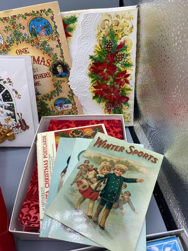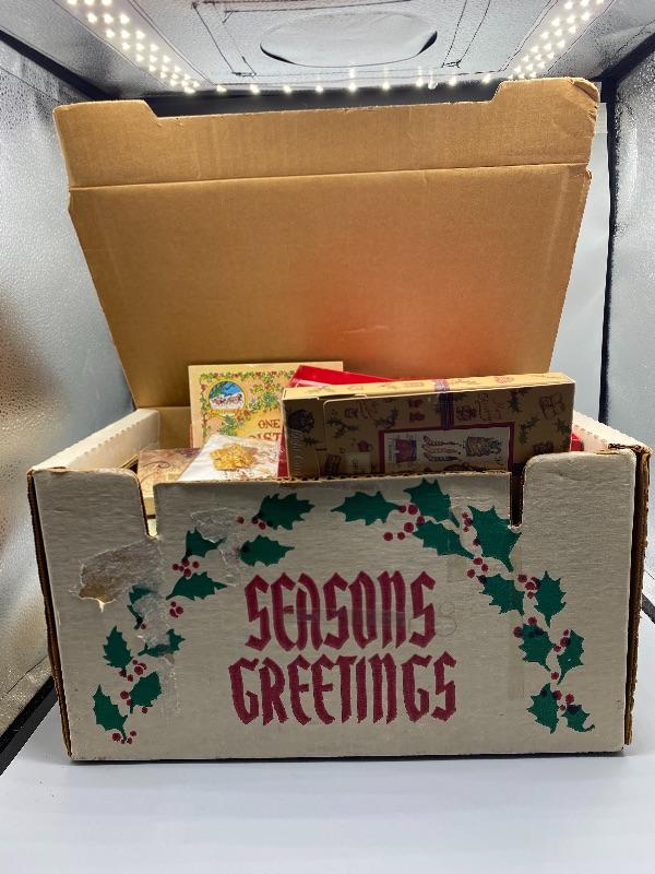 Huge mixed lot of vintage holiday Christmas cards. Variety of styles. Come in vintage holiday turkey box.