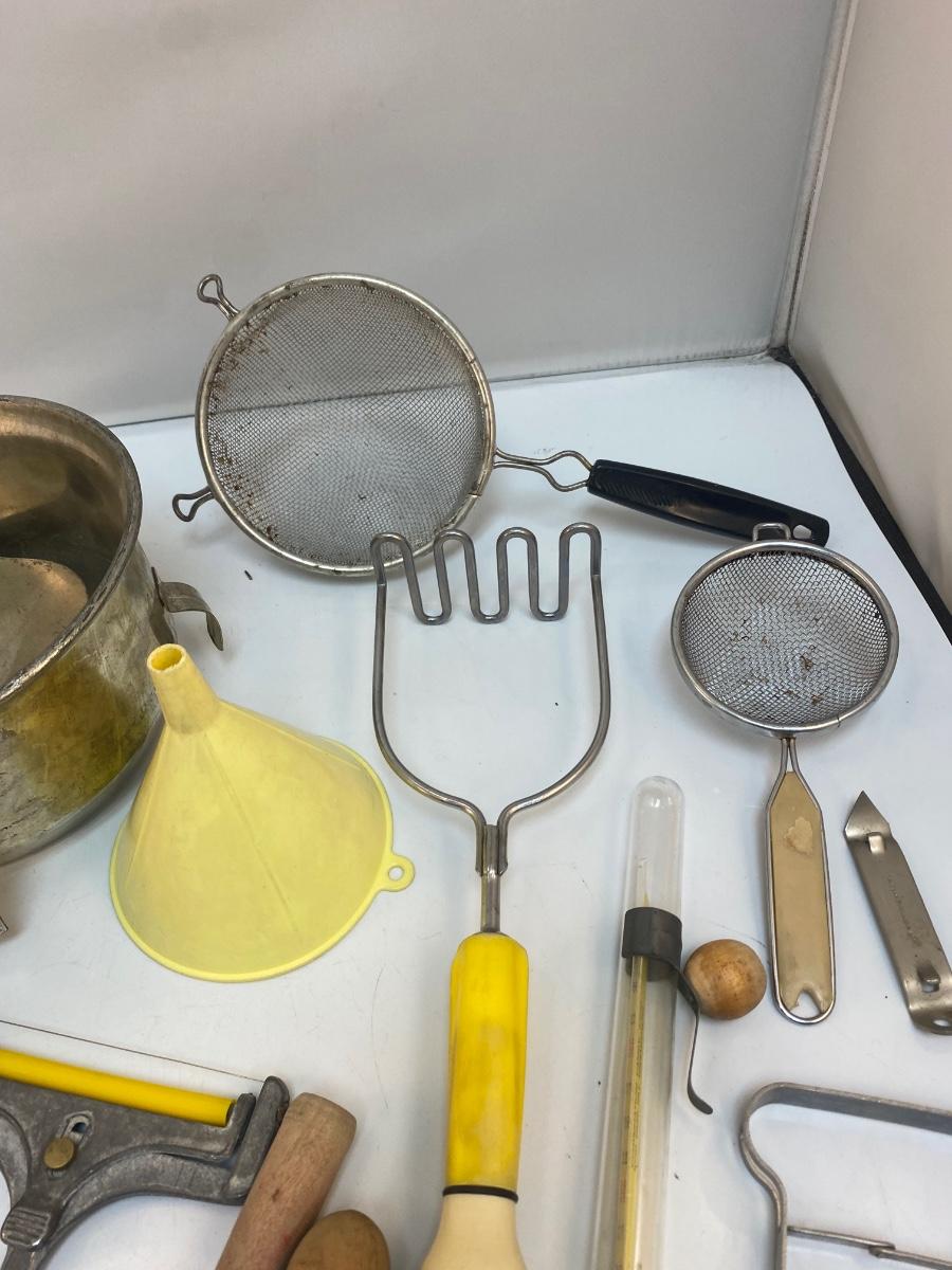 Mixed Lot of Vintage Kitchen Tools Gadgets Utensils. In good vintage conditions. Great for decor purposes and/or use.