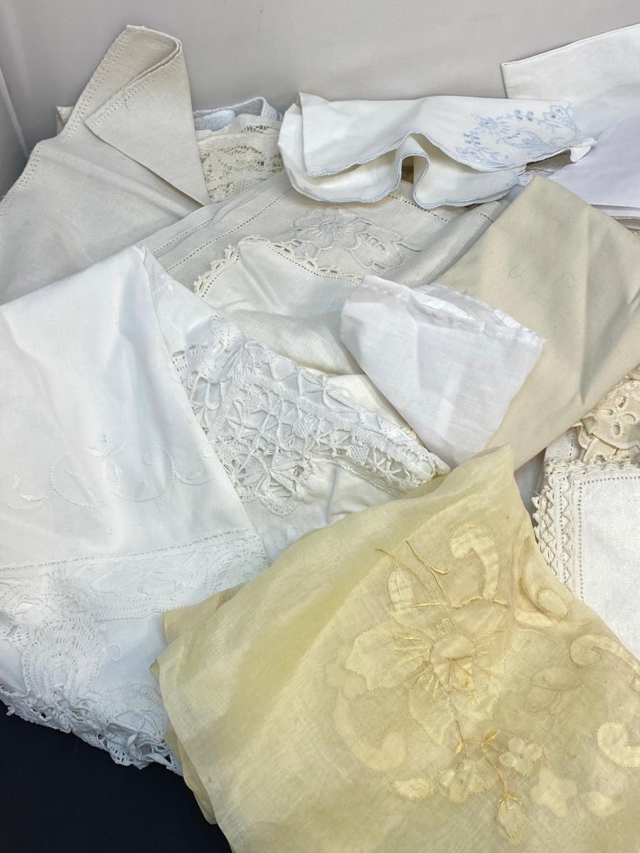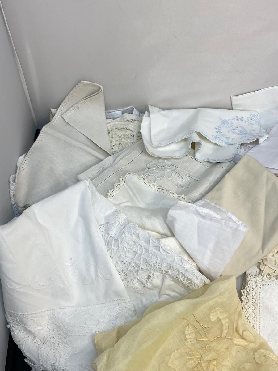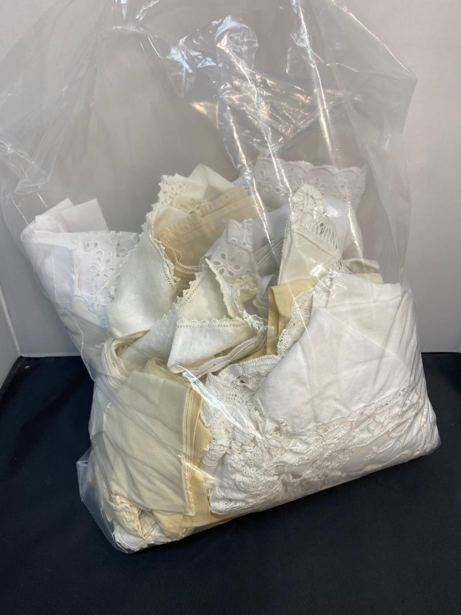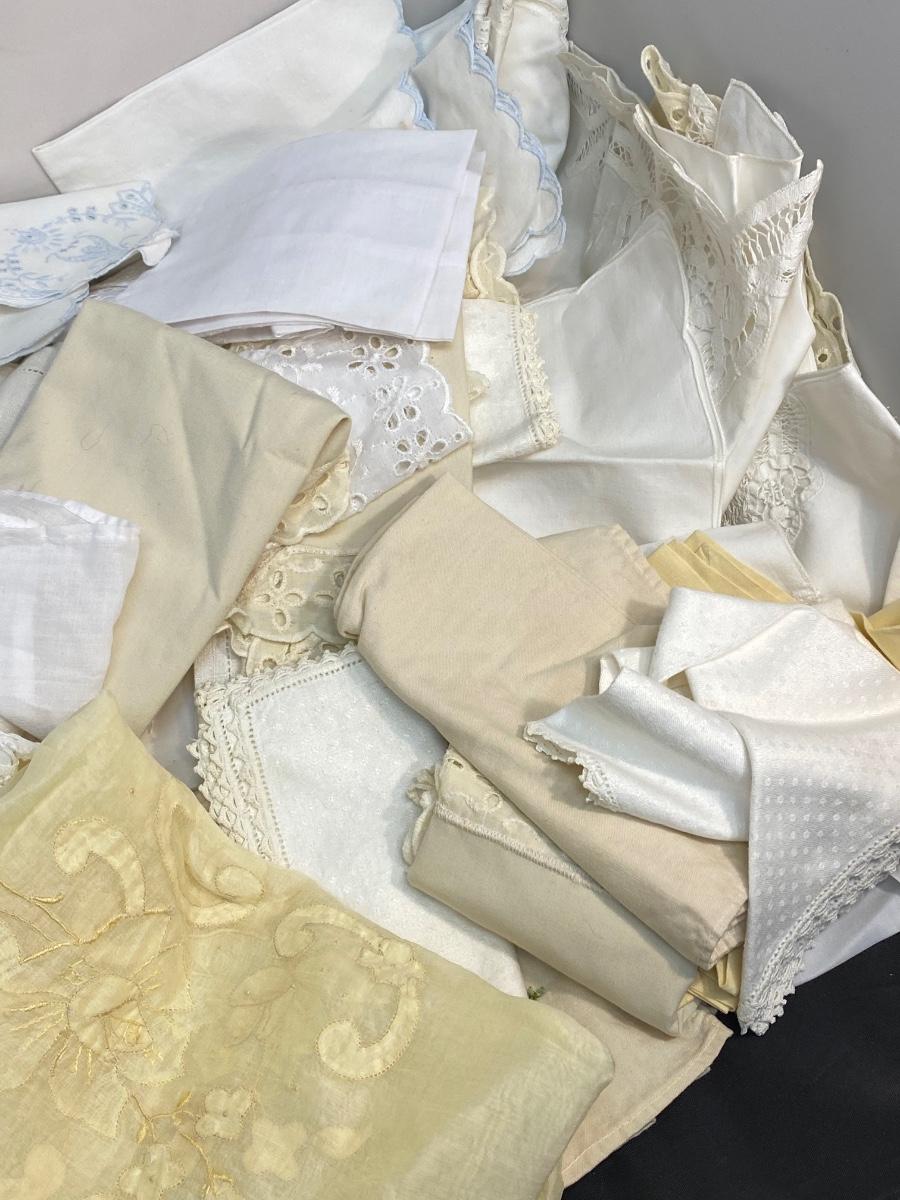 Mixed lot of vintage linens. Mostly cloth napkins. Large lot of various styles.