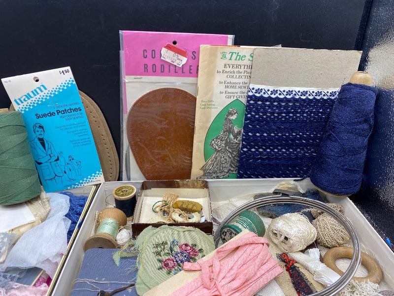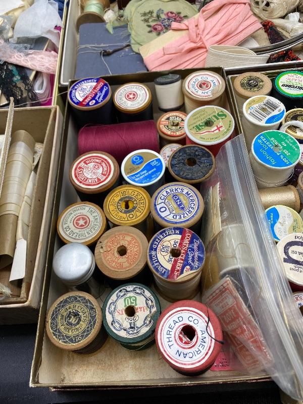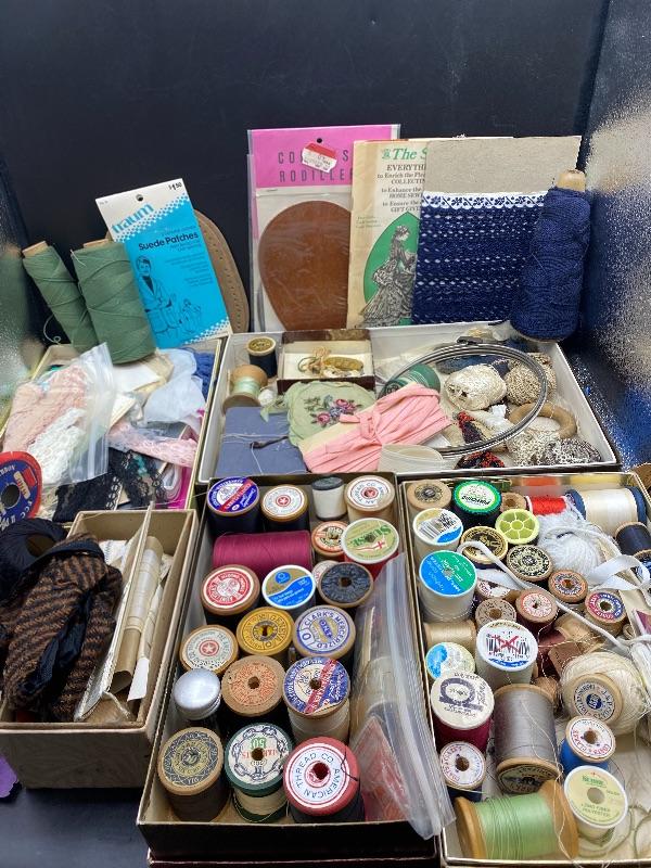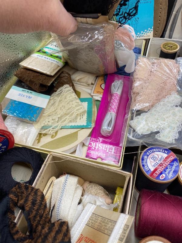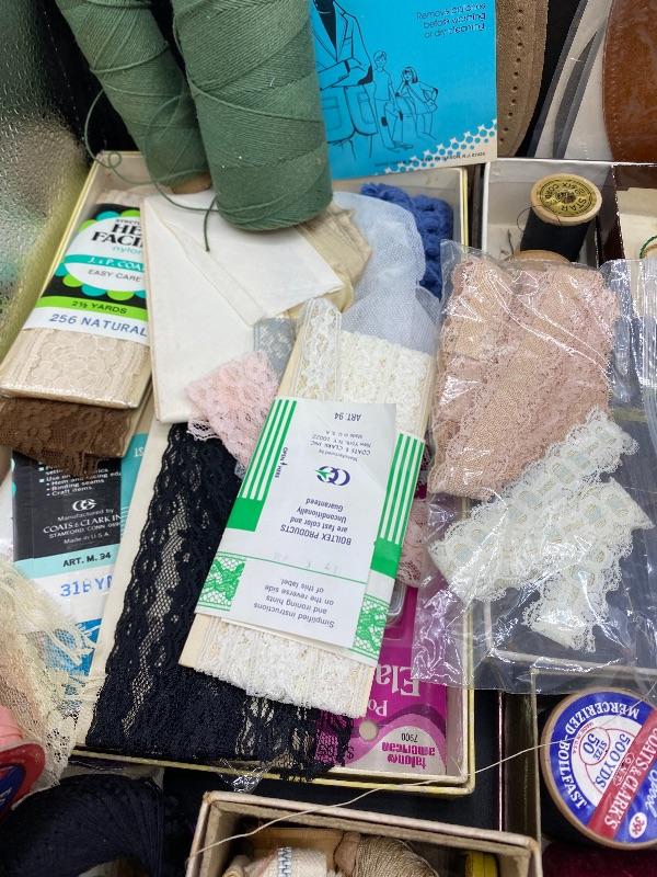 Mixed Lot of Vintage Sewing Supplies, Thread, Lace YD#016-1120-00051
