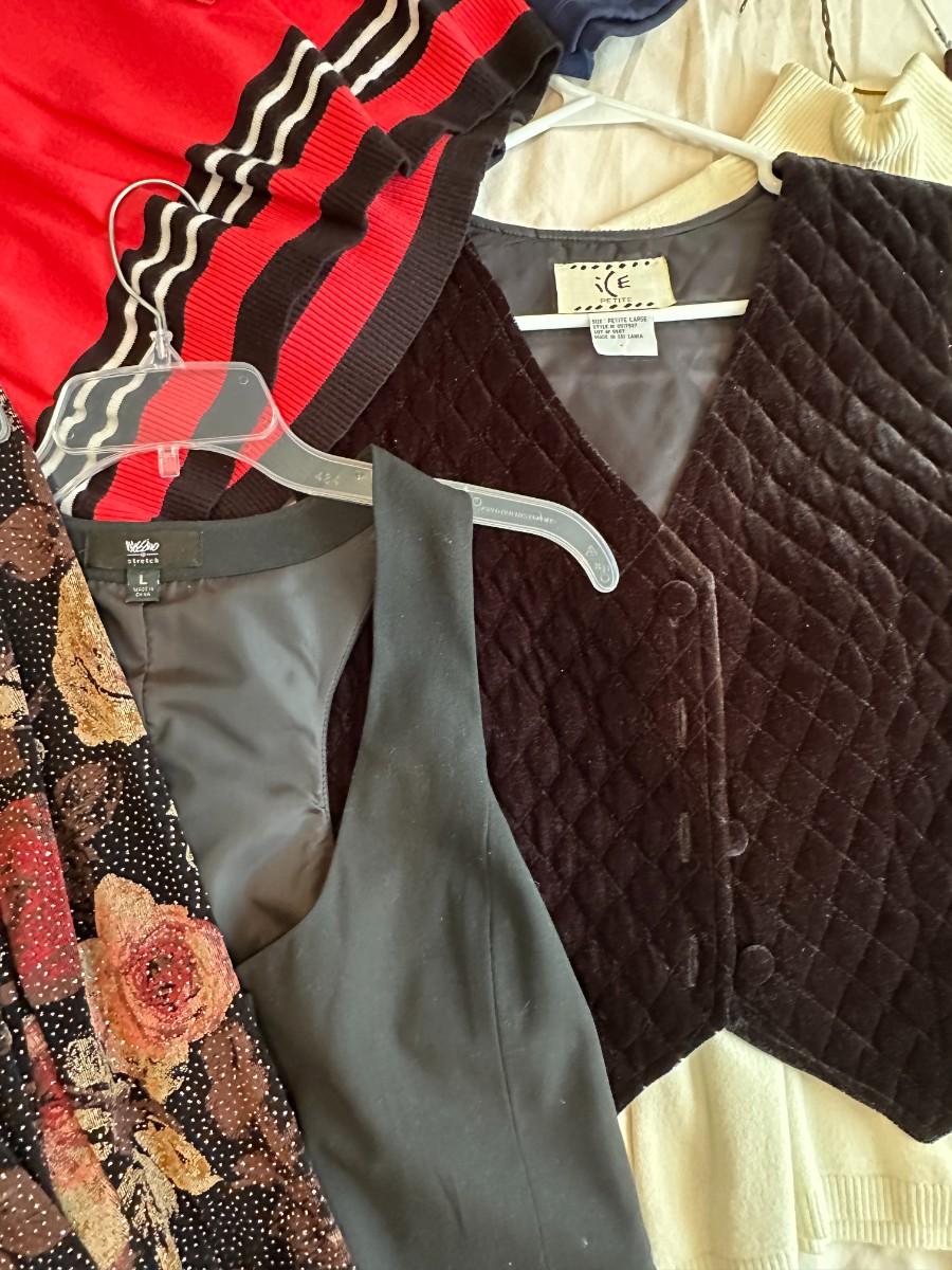 Sizes 10-12, Petite, Sm-Med. (red sweater)