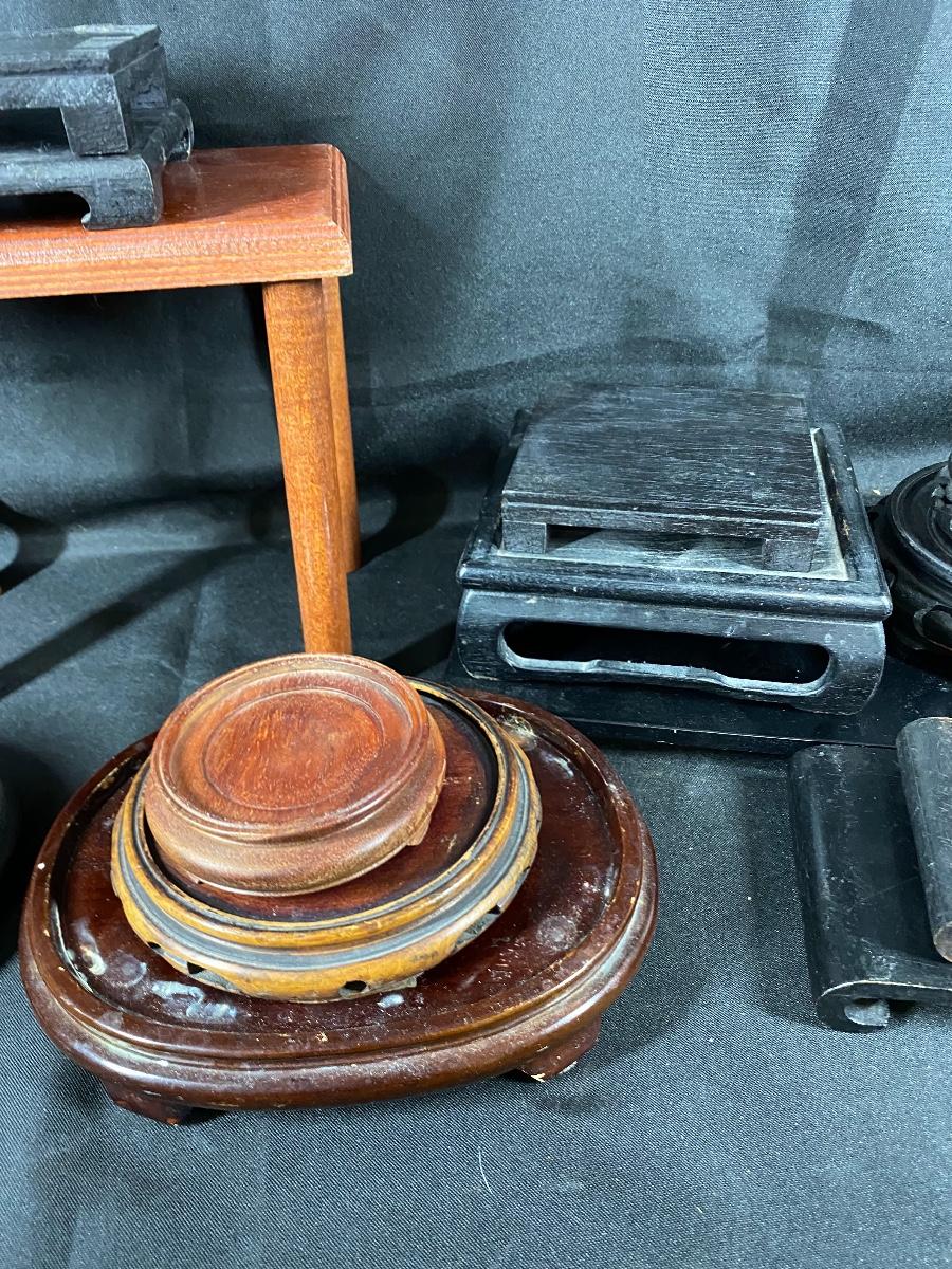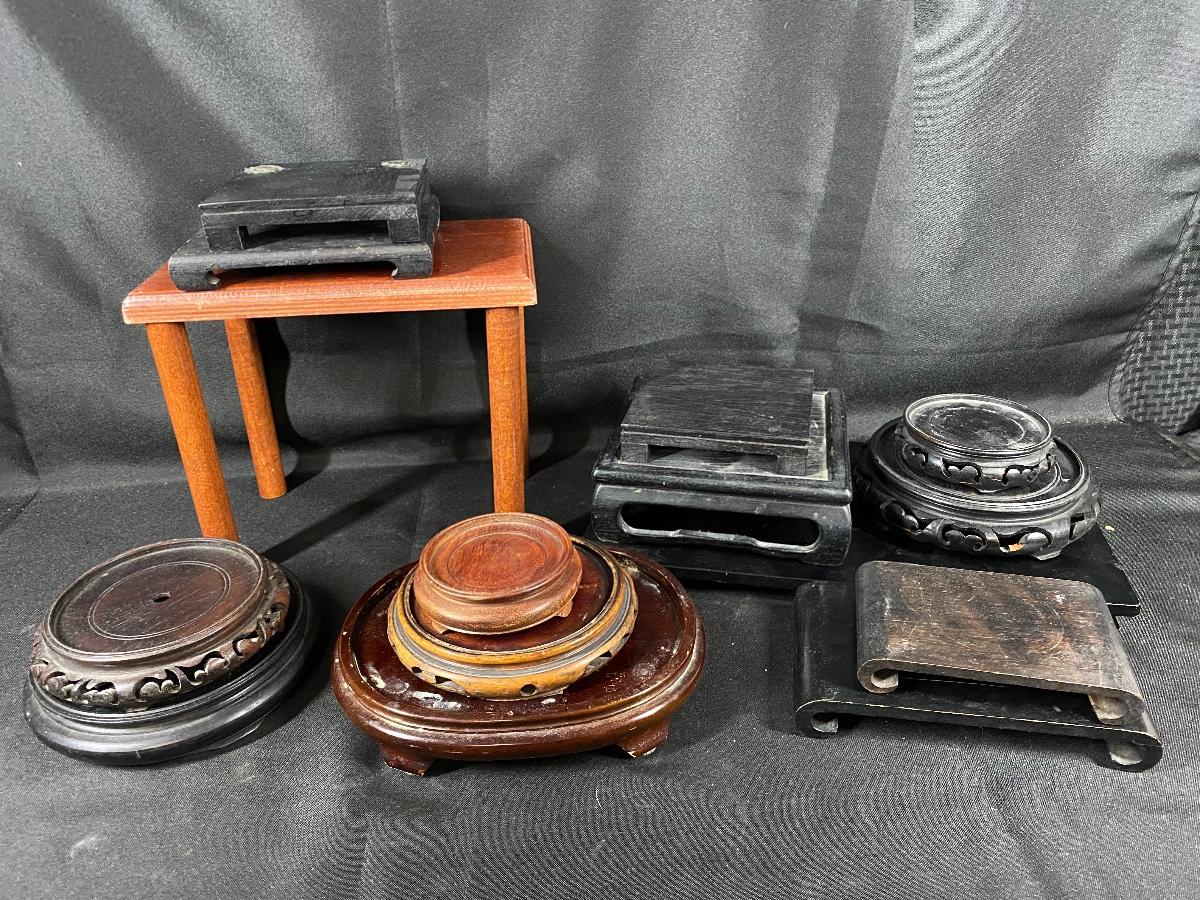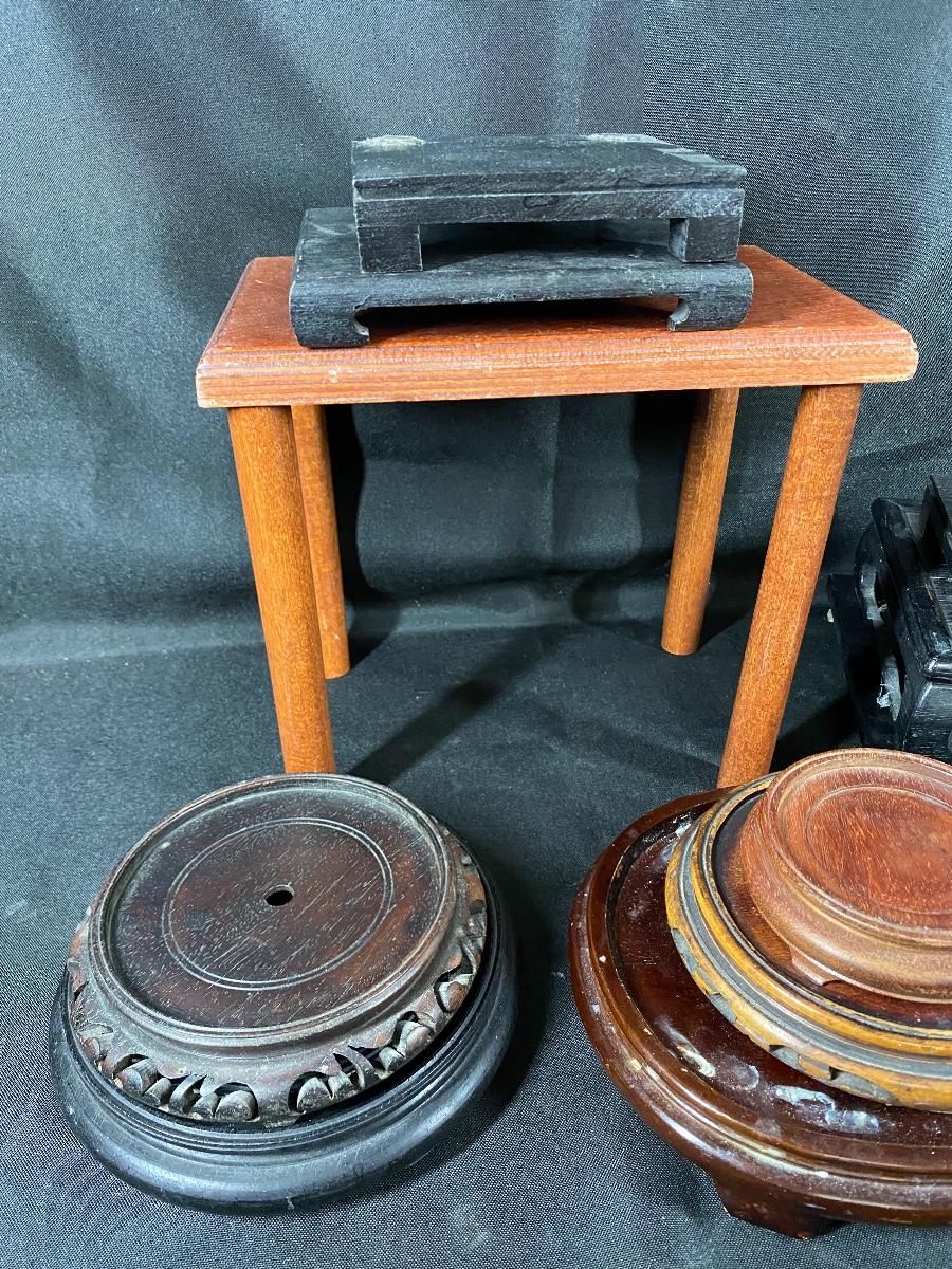Mixed lot of wood plant stands. Great for planter pots, vases, figurines and other displayed items.