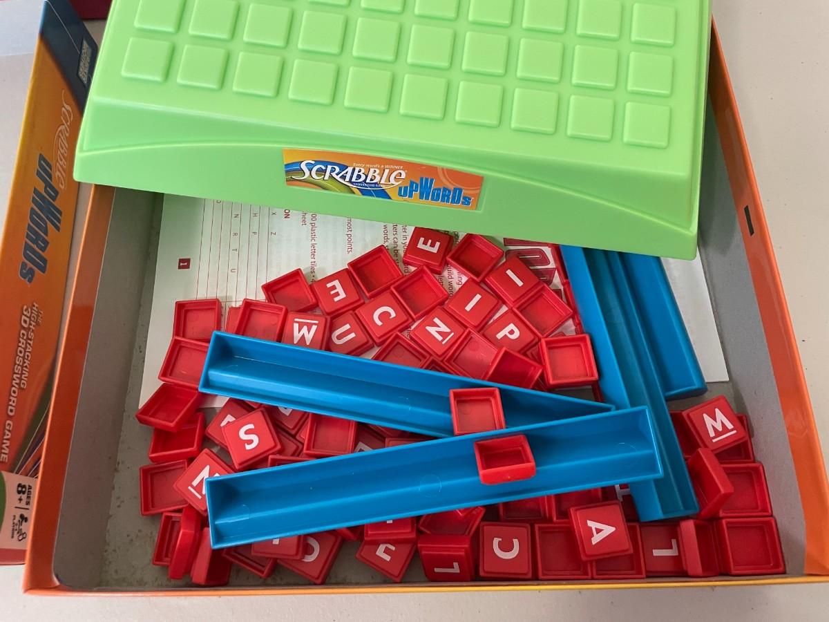 Includes Scdrabble UpWords, classic Scrabble and RSVP.