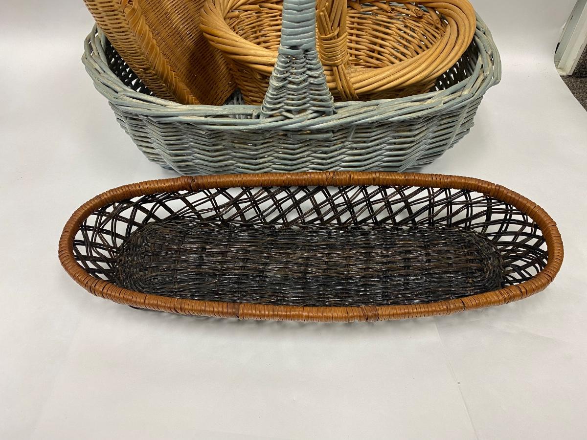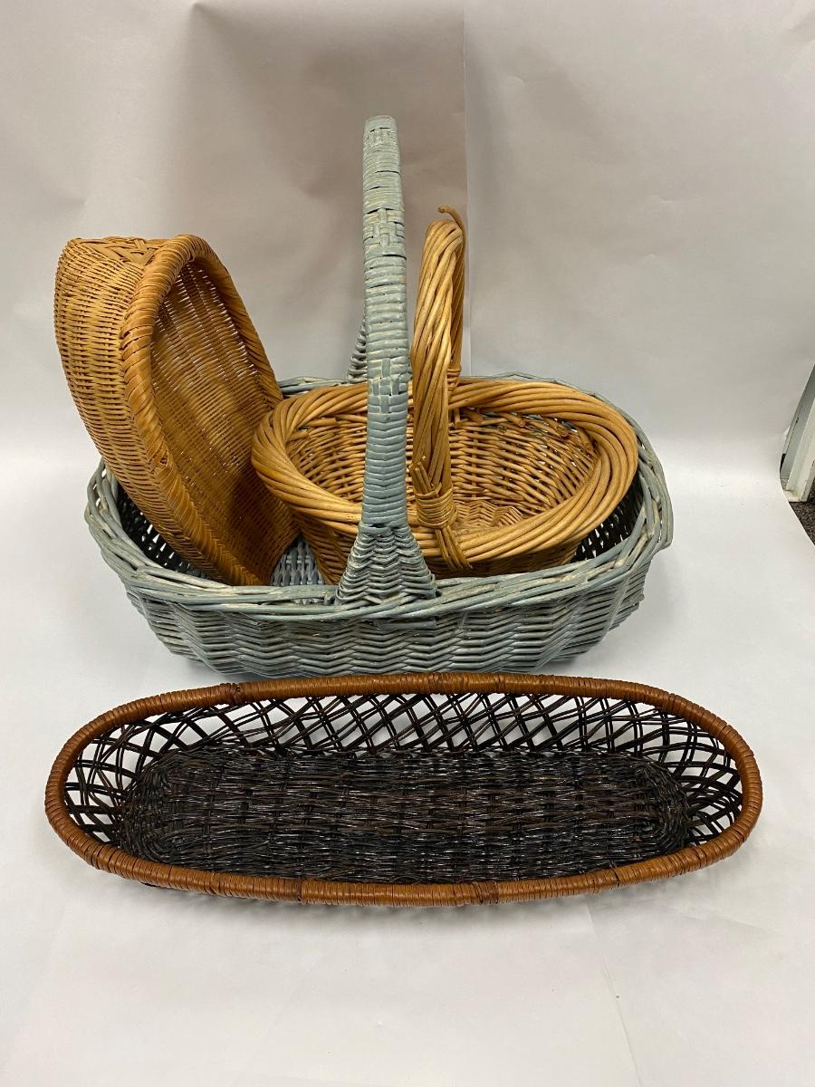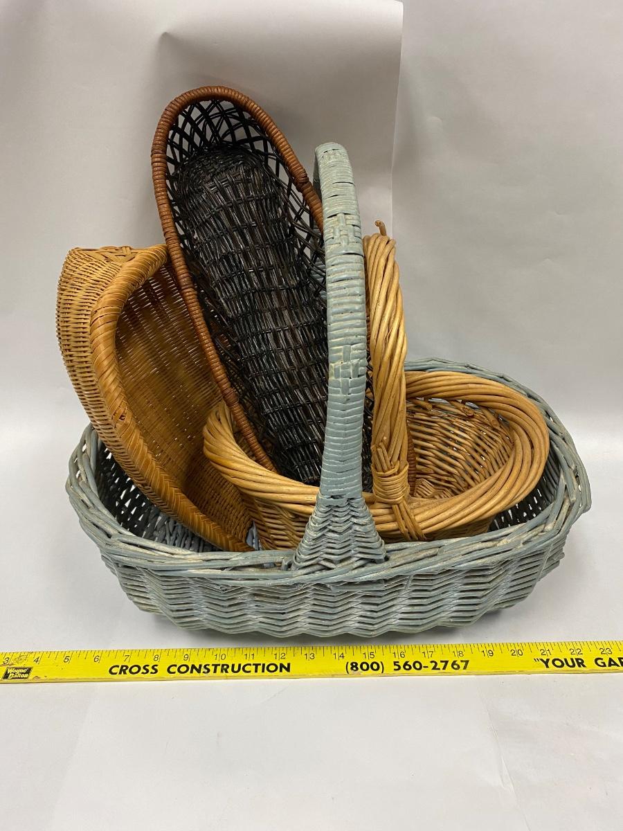 Mixed Lot of Woven Baskets. Good condition. The largest is about 20" length.
