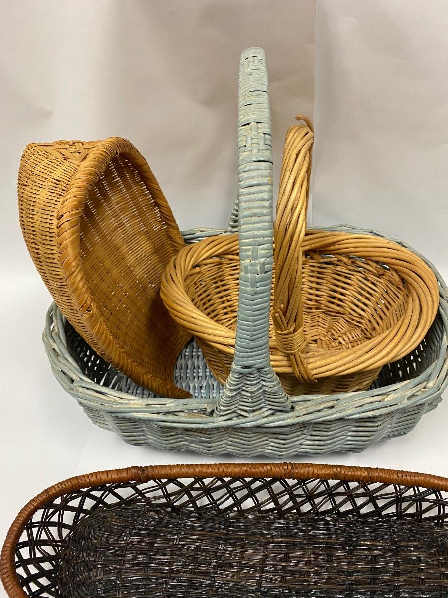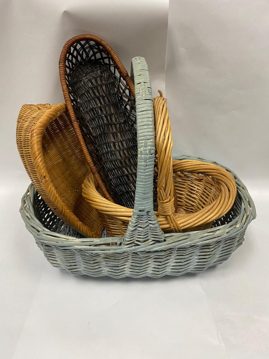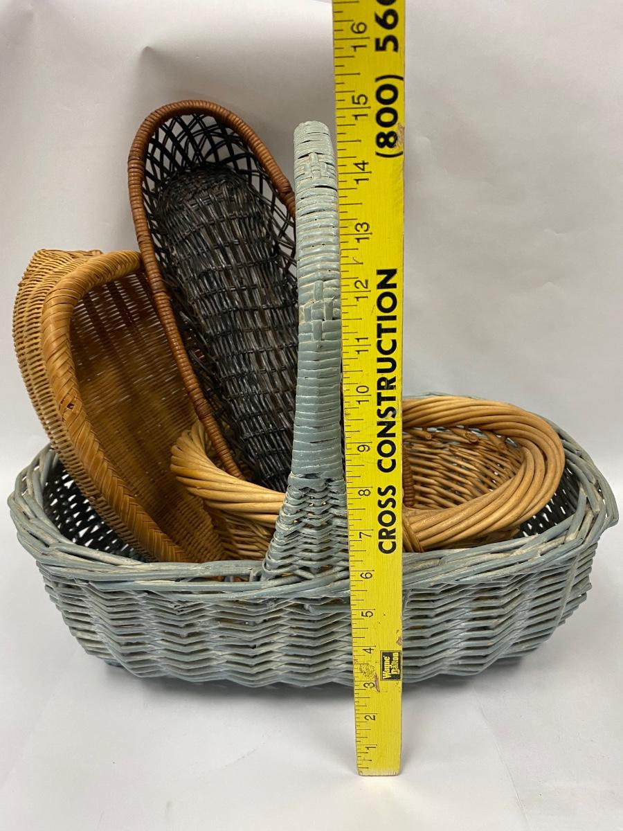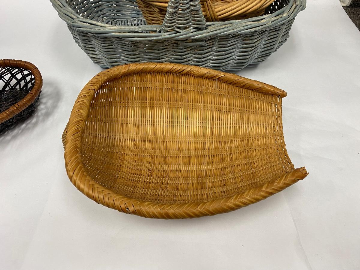 Mixed Lot of Woven Baskets. Good condition. The largest is about 20" length.