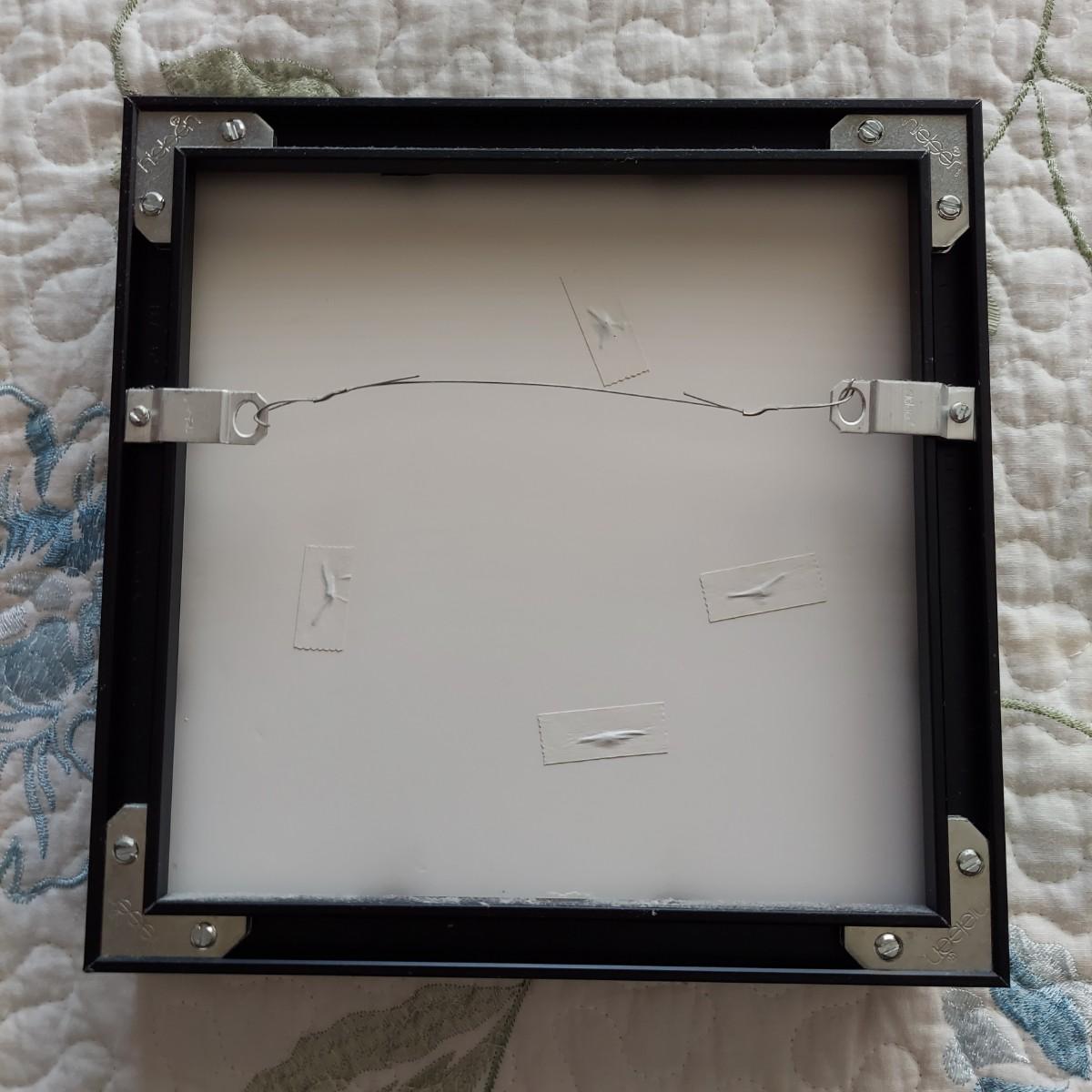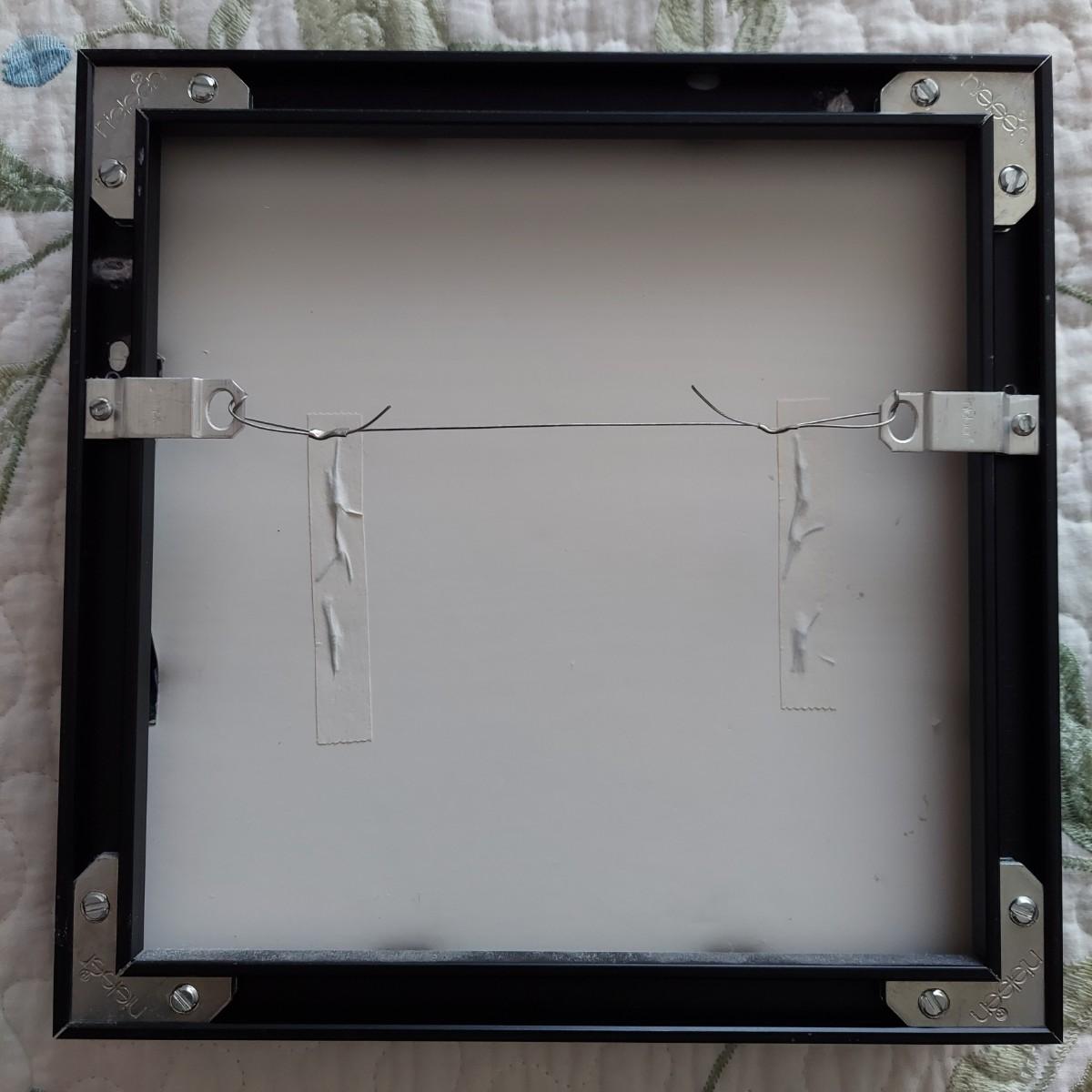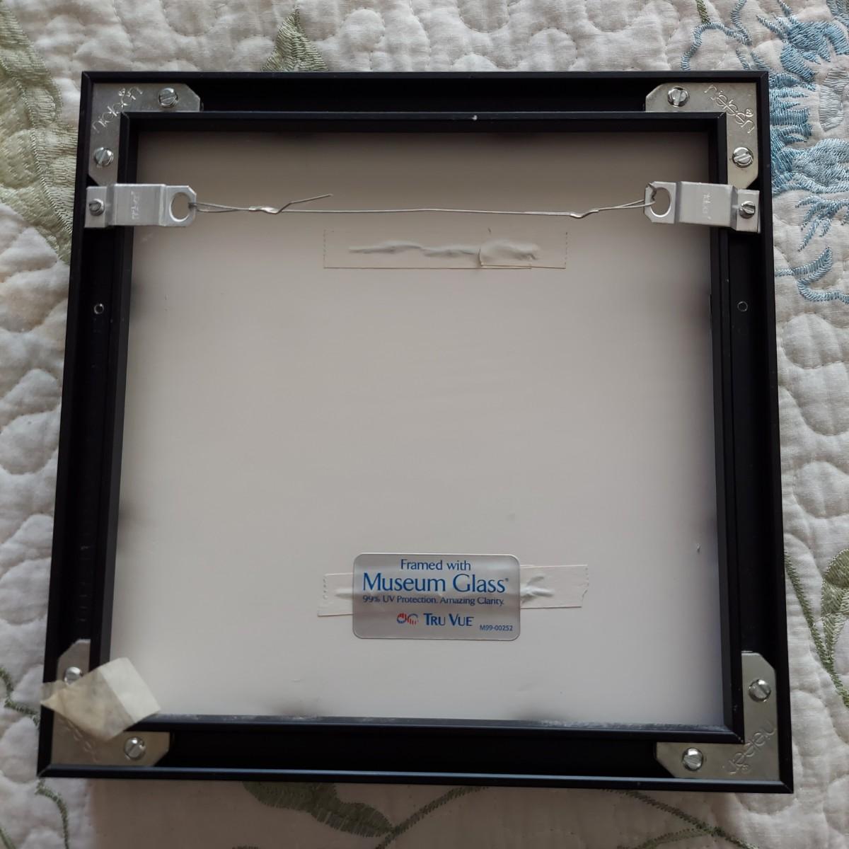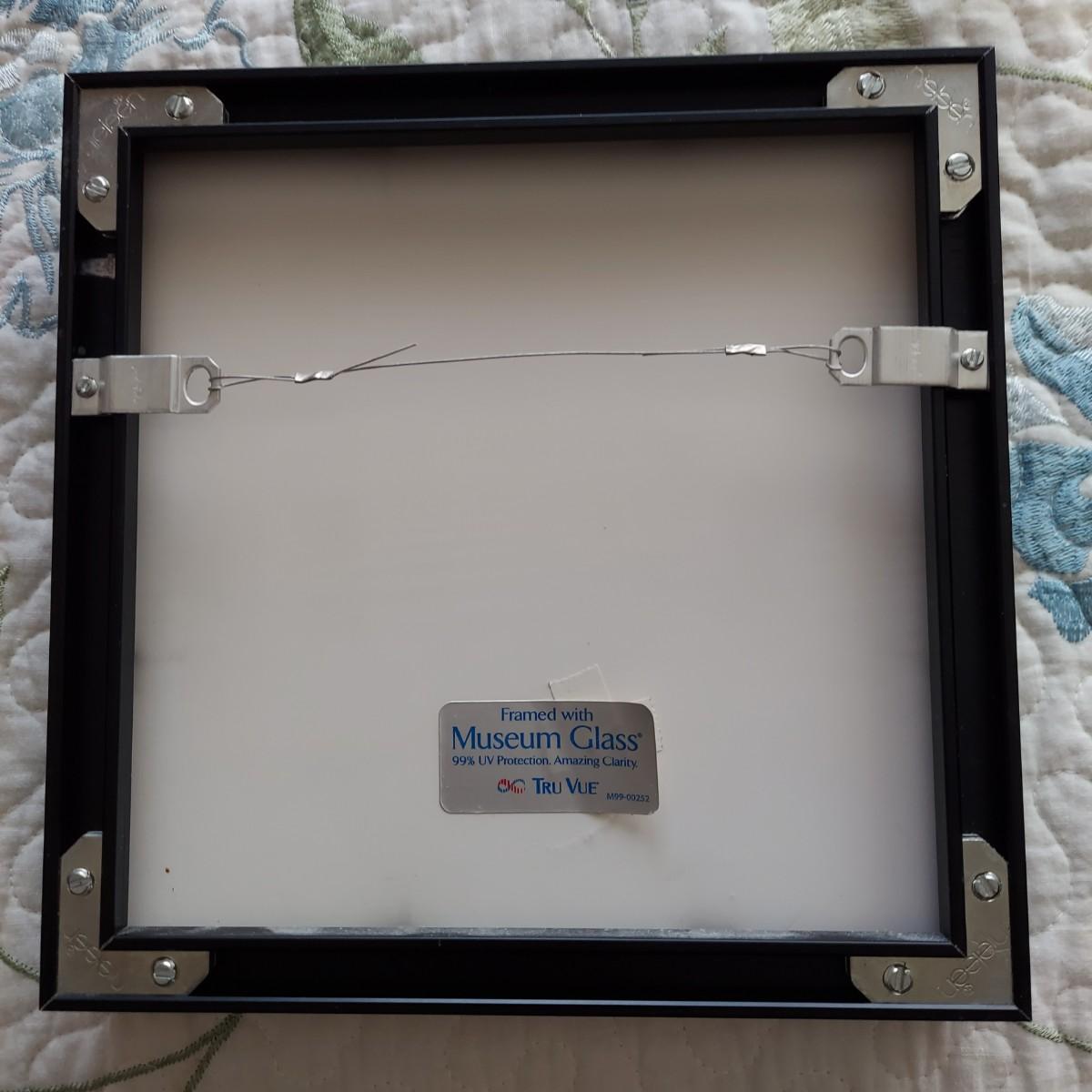 Four pieces of framed and matted mixed media art in metal frames. Hetty and Norman Metzger specialize in a mix of folded paper and fiber arts. Pencil signed by the artists. Each frame is 8" x 1.5" x 8"H. Shipping available.