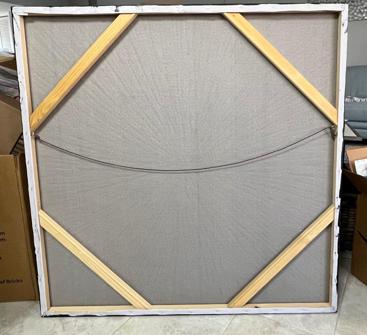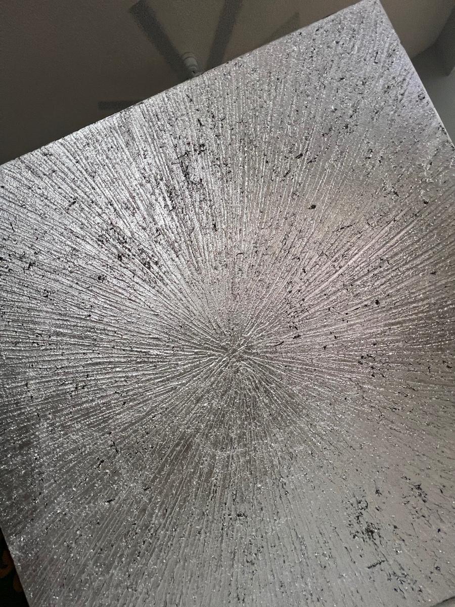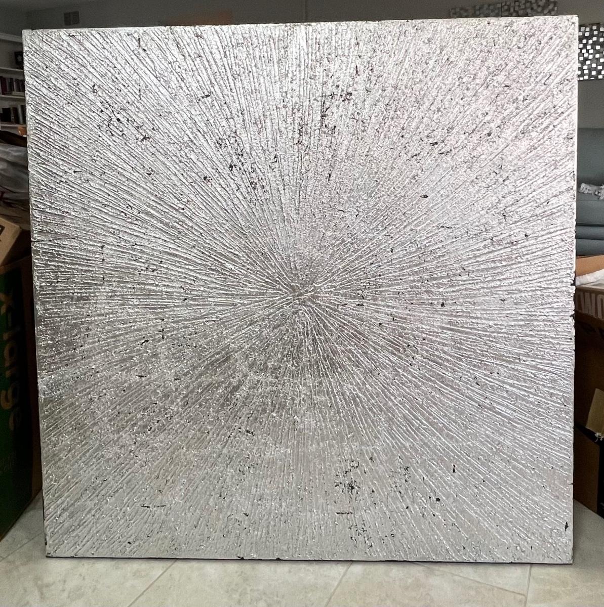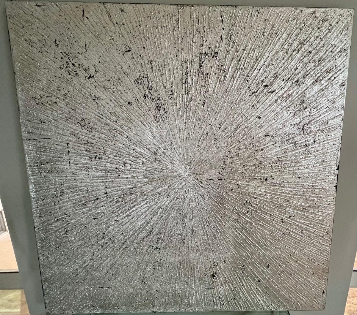 This piece includes both silver and black tones. Stretched canvas over frame. Unsigned piece. 39.5" W x 39.5" H. This item is located another location. Further arrangements will need to be made to pick up this item. [EW]