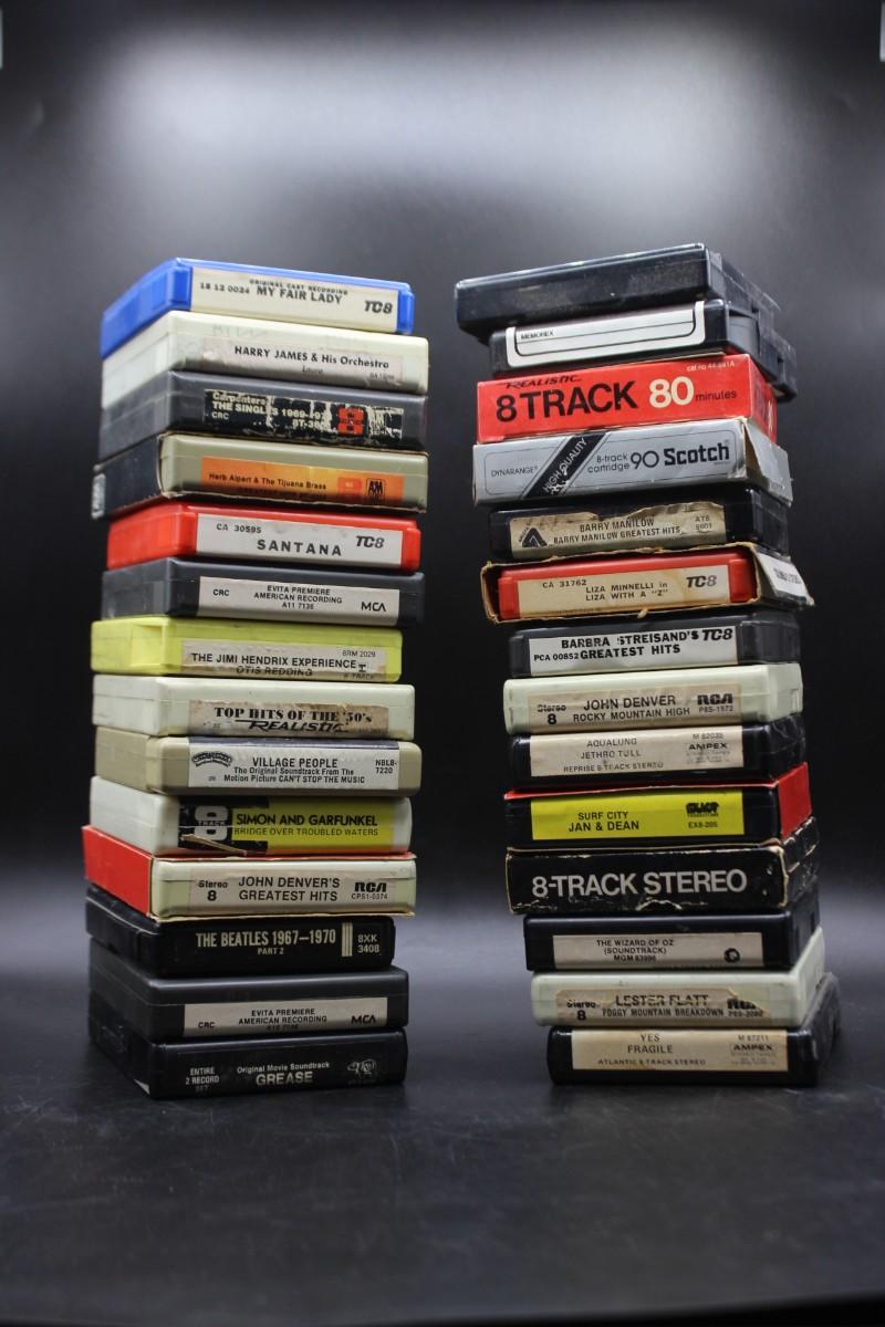 Mixed lot of 8 track tapes. wide range of music. Untested. 28 tapes total.