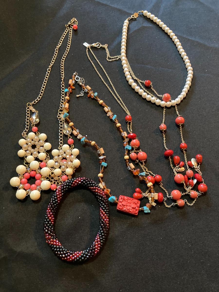 Mixed Necklace and Bracelet Lot with Red Beads and more