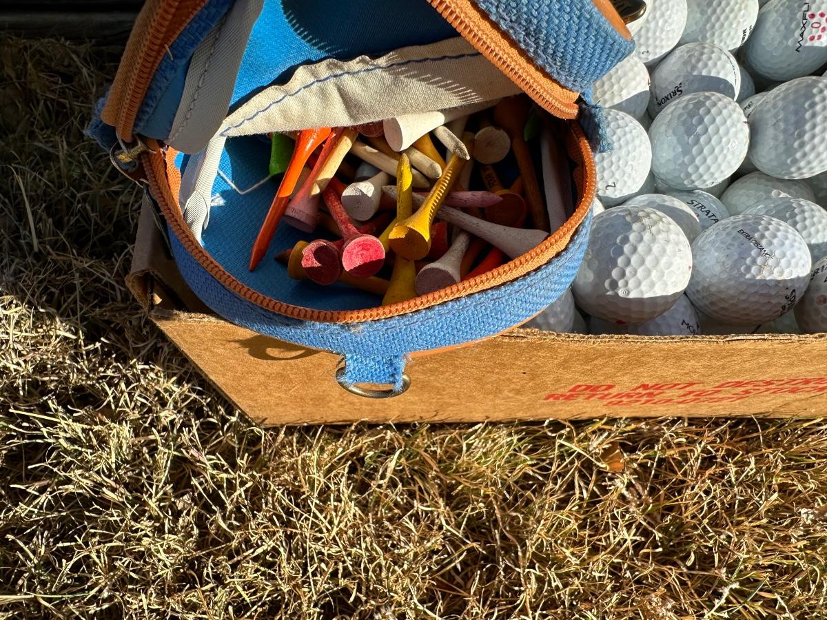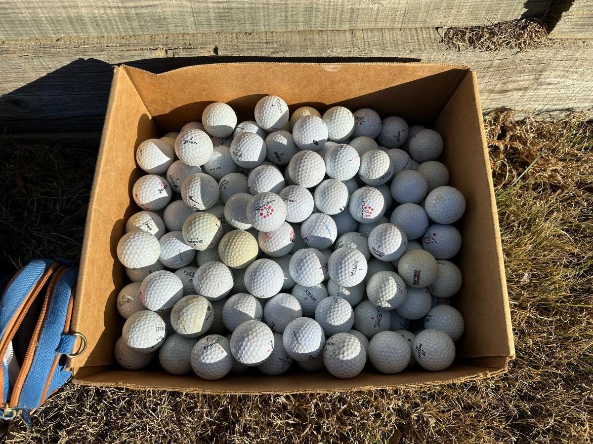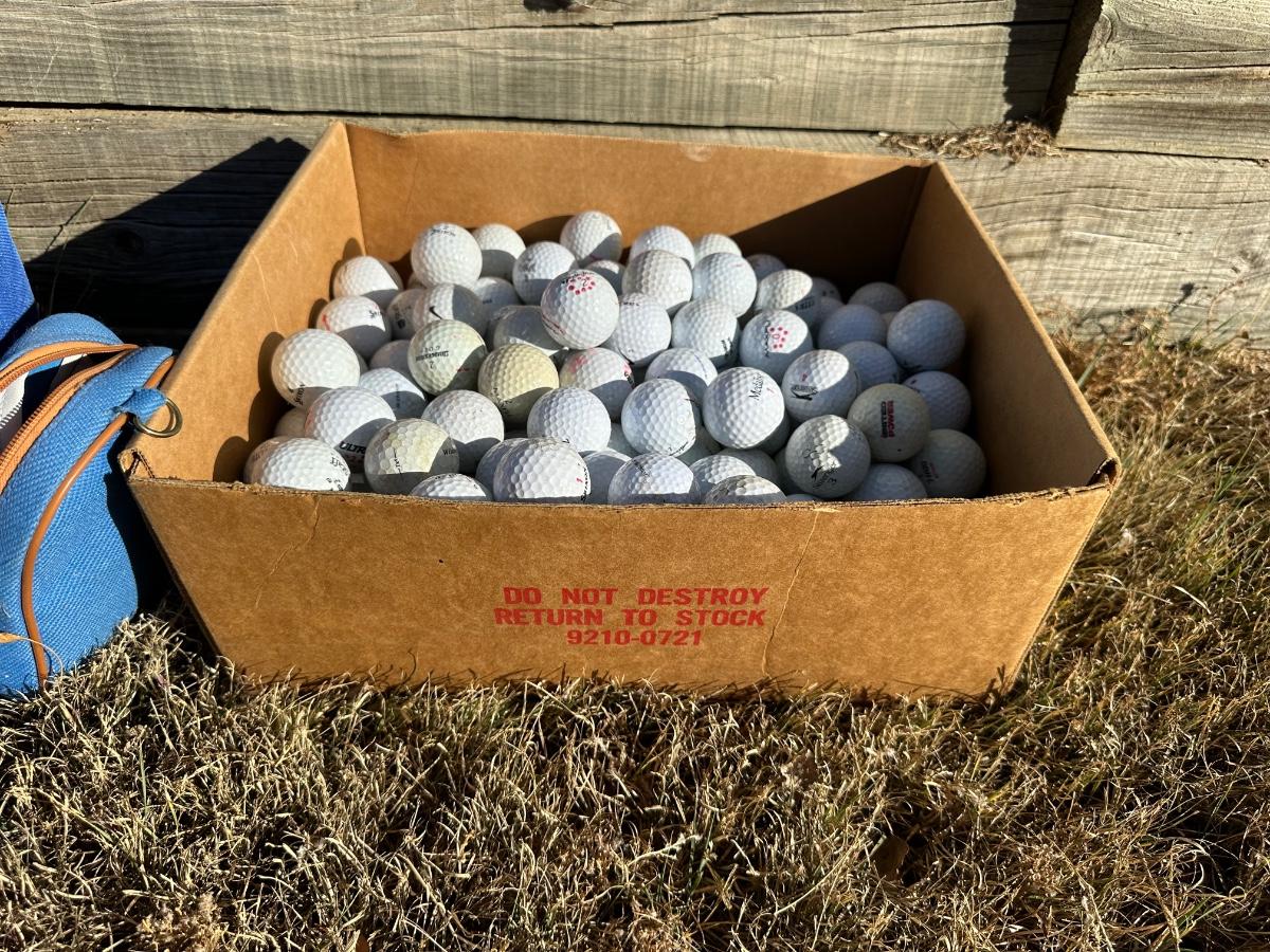 MIXED SET OF GOLF CLUBS, BAG AND MANY GOLF BALLS
