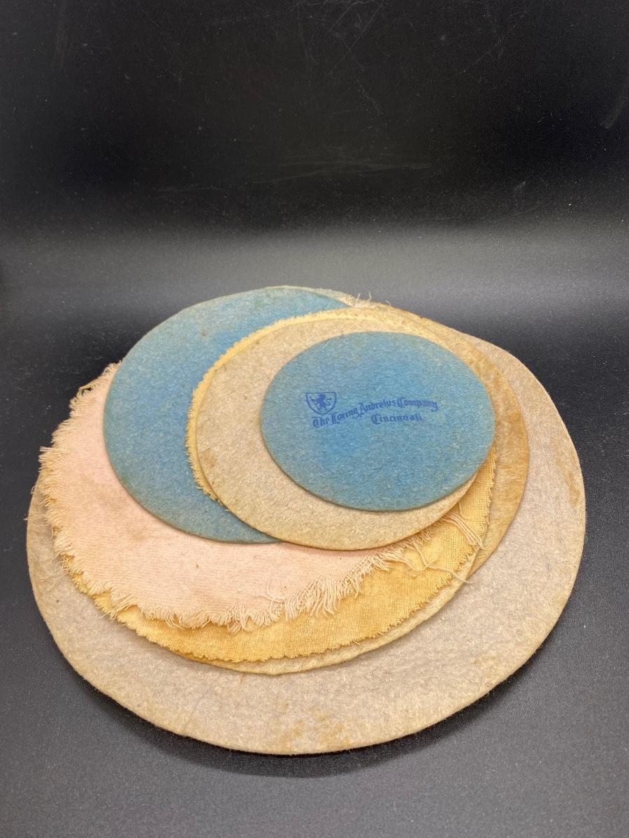 Mixed lot of vintage dishware felt separators. Circle pads used to protect dishes stacked together. Various sizes. Some discolor from age and use.