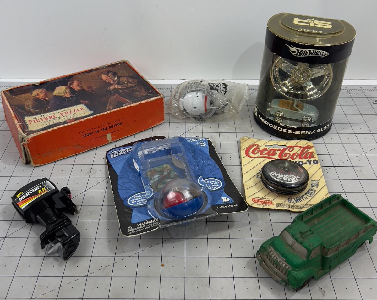 Mixed TOY Lot: Army truck, Yo-Yo, Hot Wheel, Boat Motor