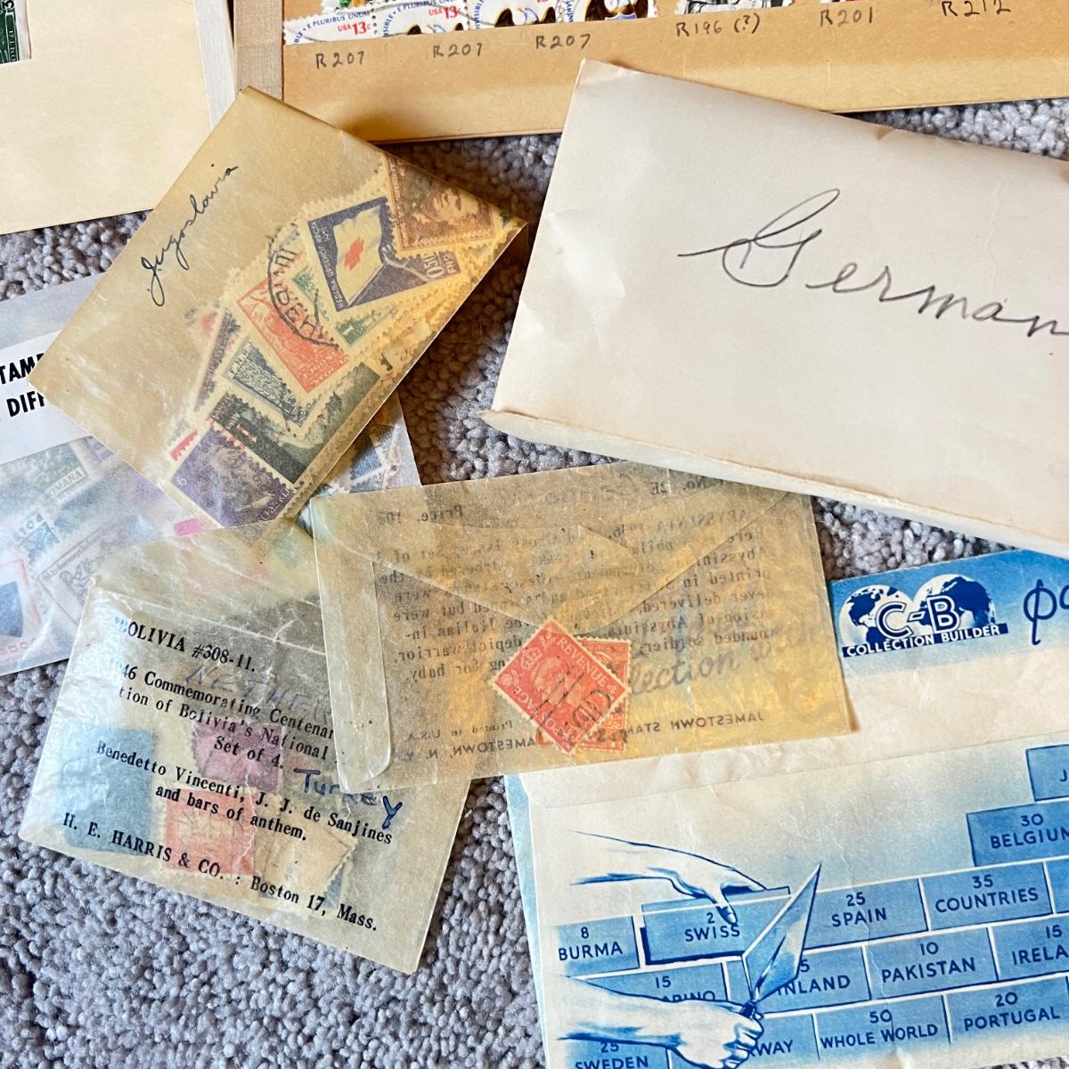 Mixed Vintage Stamp Collection Lot - Book Pages, Envelopes, Foreign