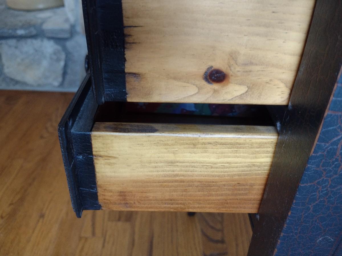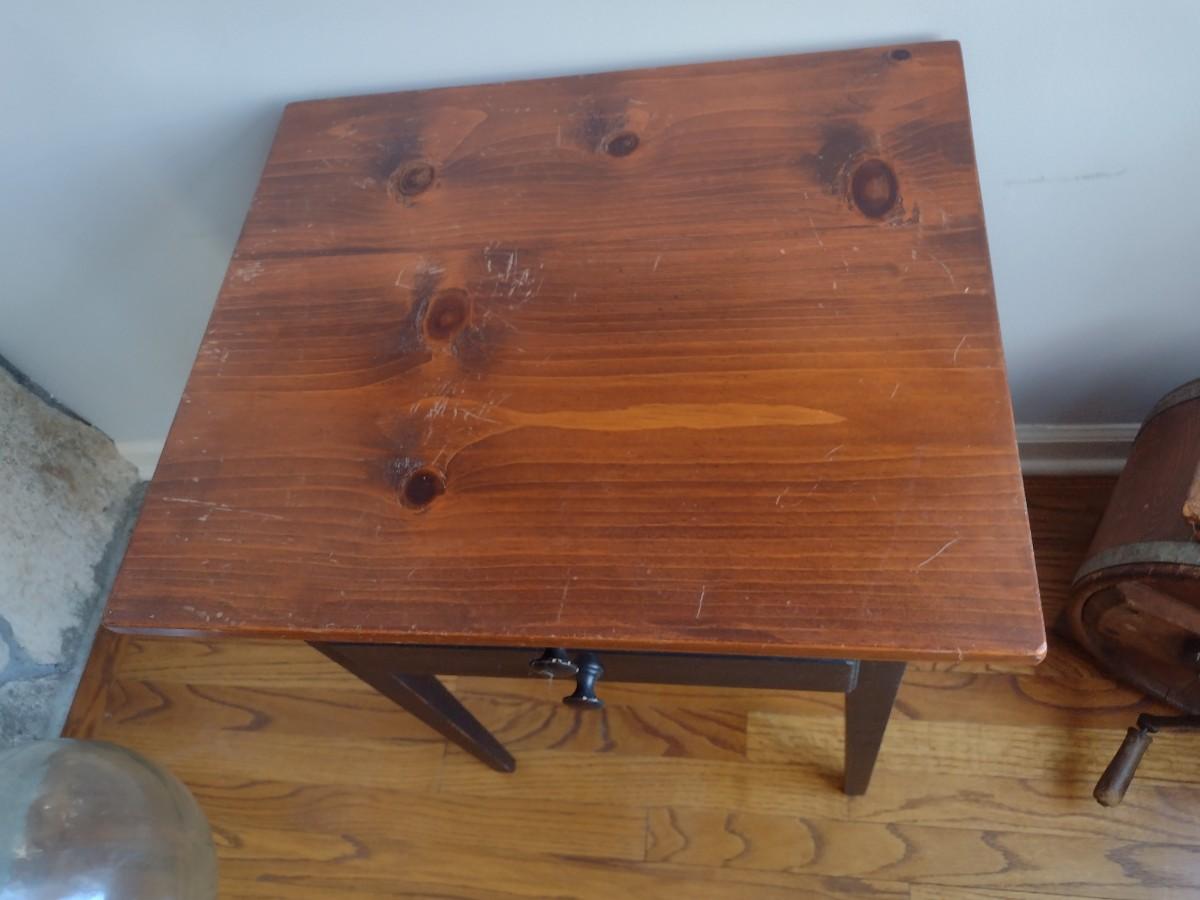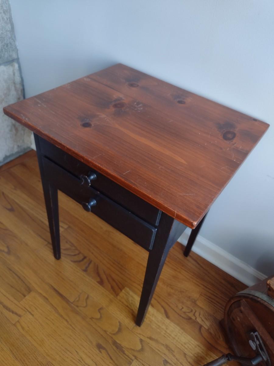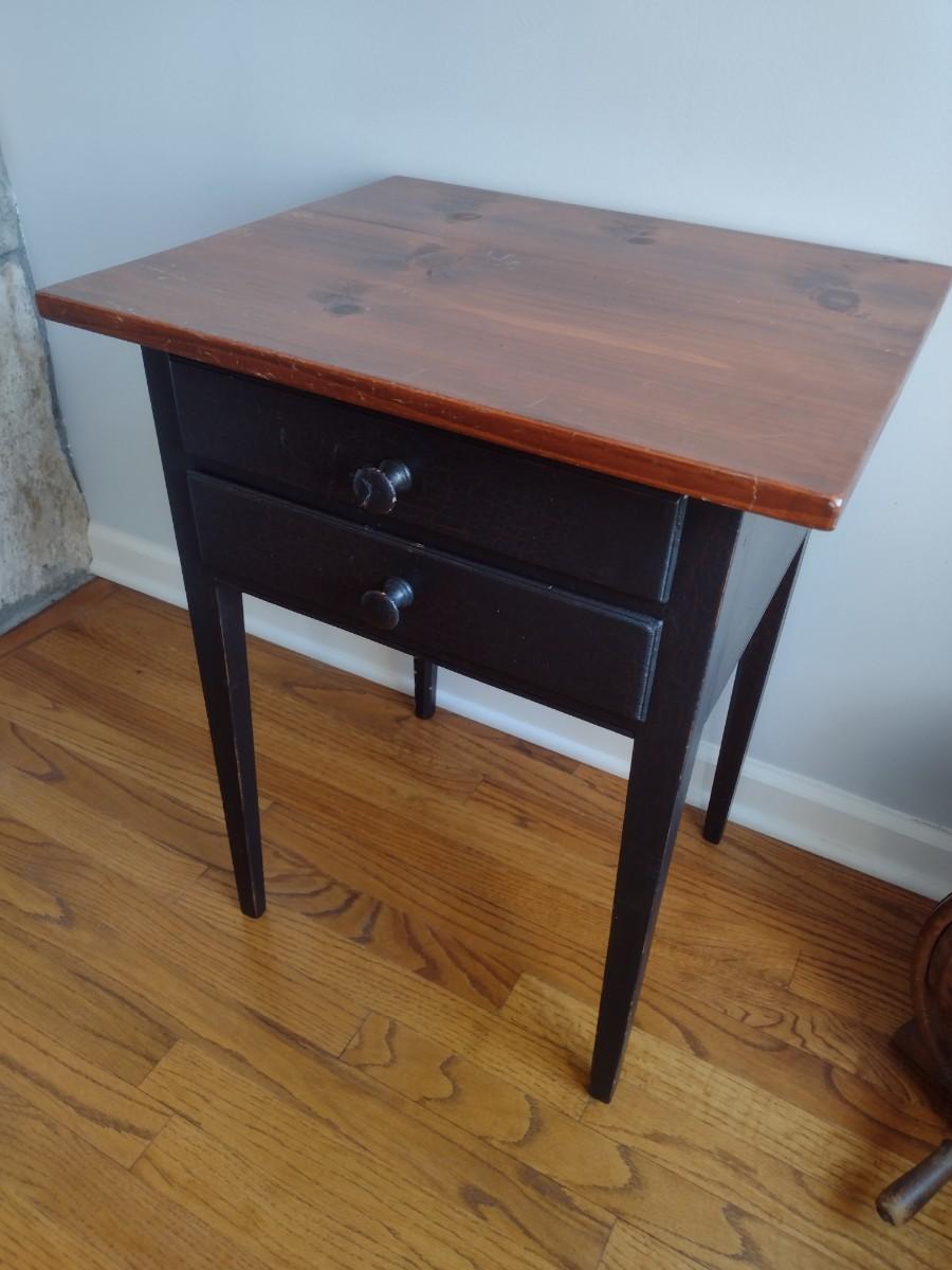 Mixed Wood Double Drawer Accent Table--some scratches and wear as shown.