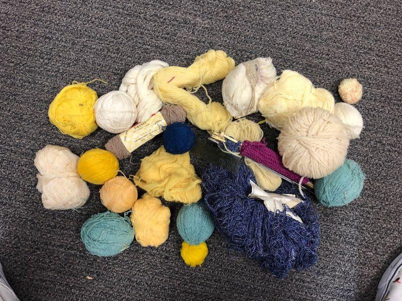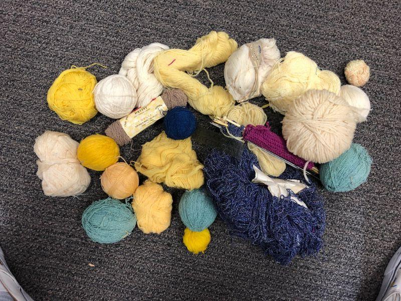 Mixed yarn lot. Yellows and blues. Various lengths.
