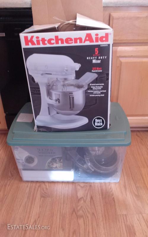 Kitchen Aid Heavy Duty 5 Quart Mixer 325 Watts, and food processor with additional parts for both. ***WE COULD NOT FIND THE MIXING BOWL FOR THE KITCHENAID MIXER*** Bid accordingly!