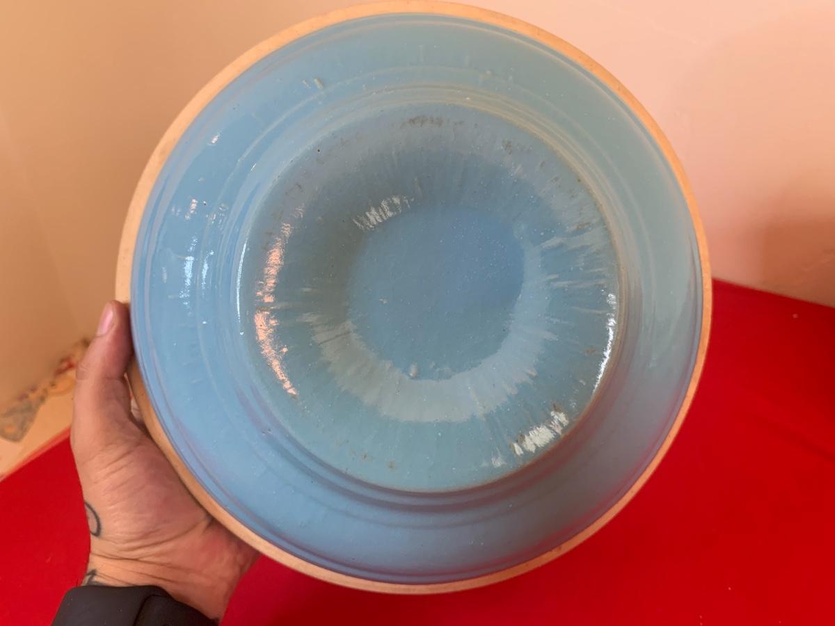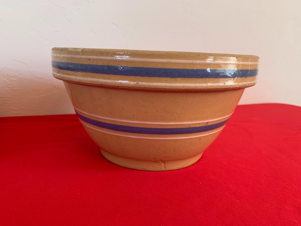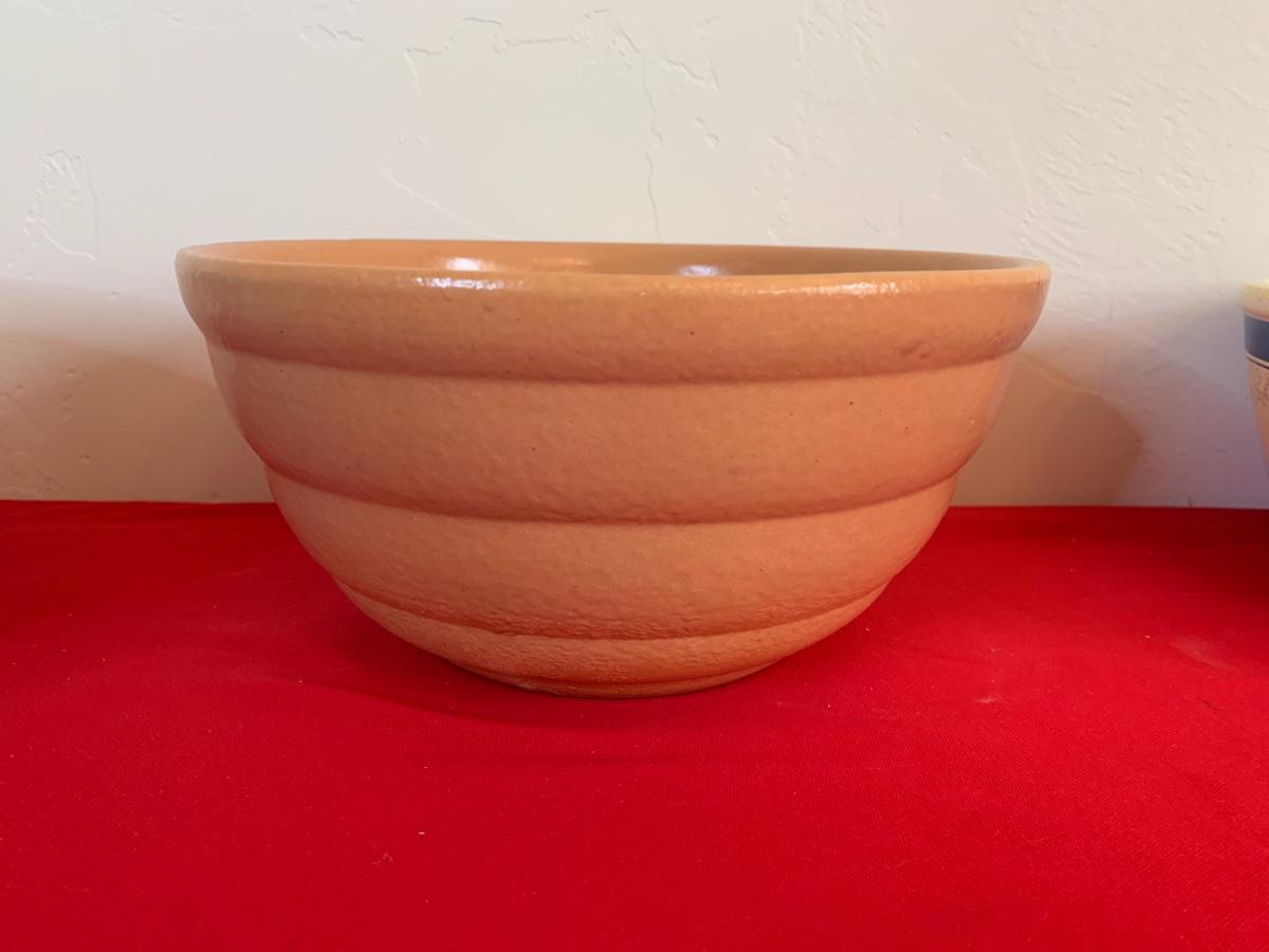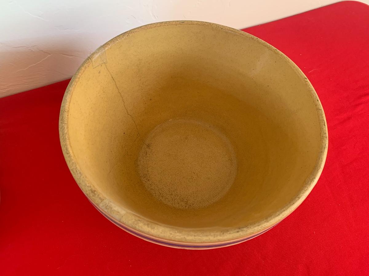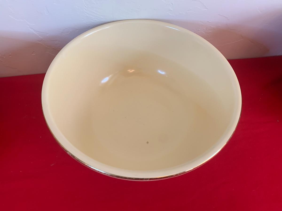 Lot includes 4 vintage mixing bowls, one marked Bak-ezee ATT Ware has large crack throughout. Others in good condition.