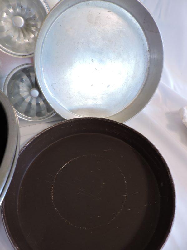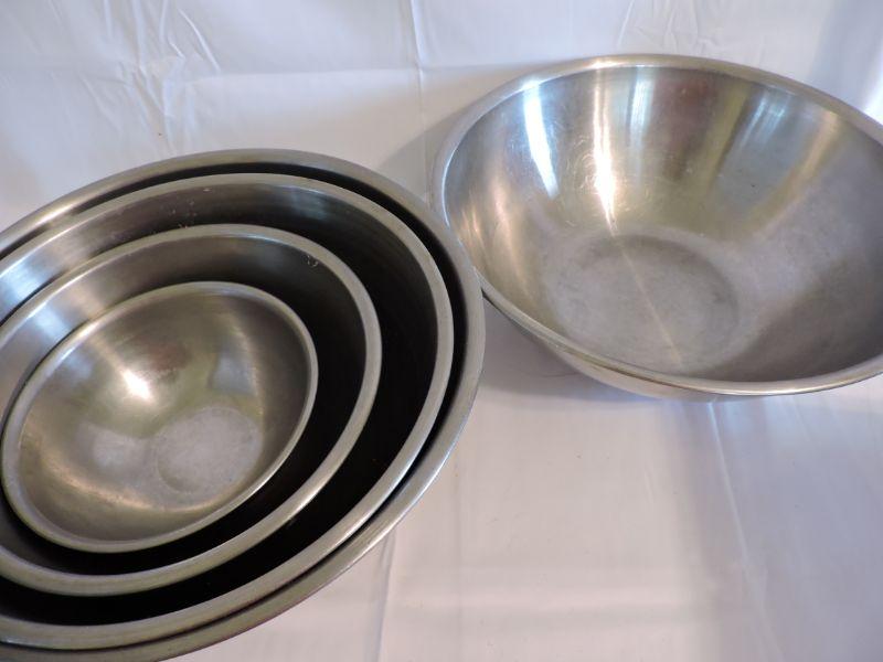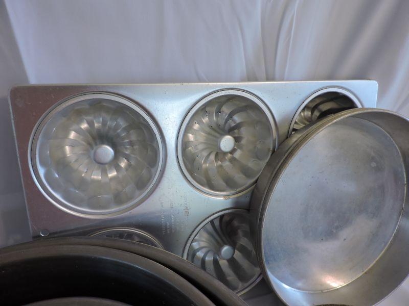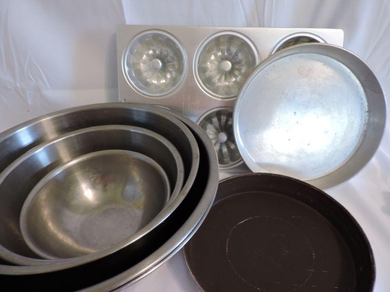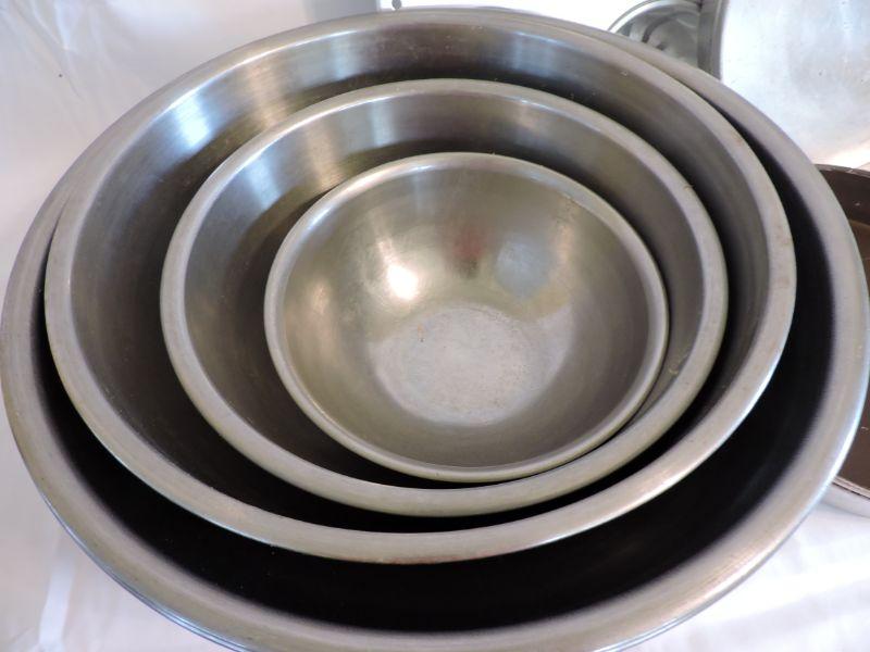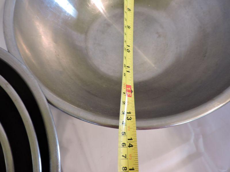 Stainless steel mixing bowls, Wearever cake pans, and a muffin tin. **Please read Terms and Conditions before placing a bid. Pick up is Saturday, November 30 from 9am to 3pm in Bridgeton, NJ. All sales are final. All sales are as is, where is. Please review all photos. Any props included in photos are not included in listing. All measurements are approximate.