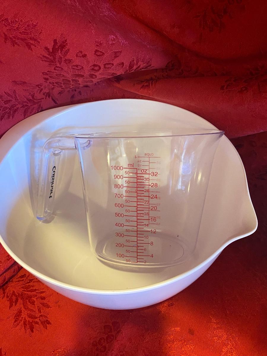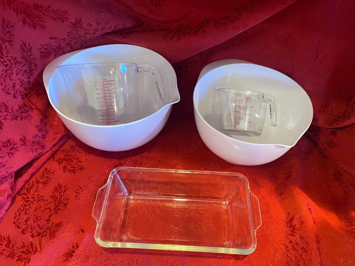 MIXING BOWLS, LIQUID MEASURING CUPS, AND GLASS BAKING DISH