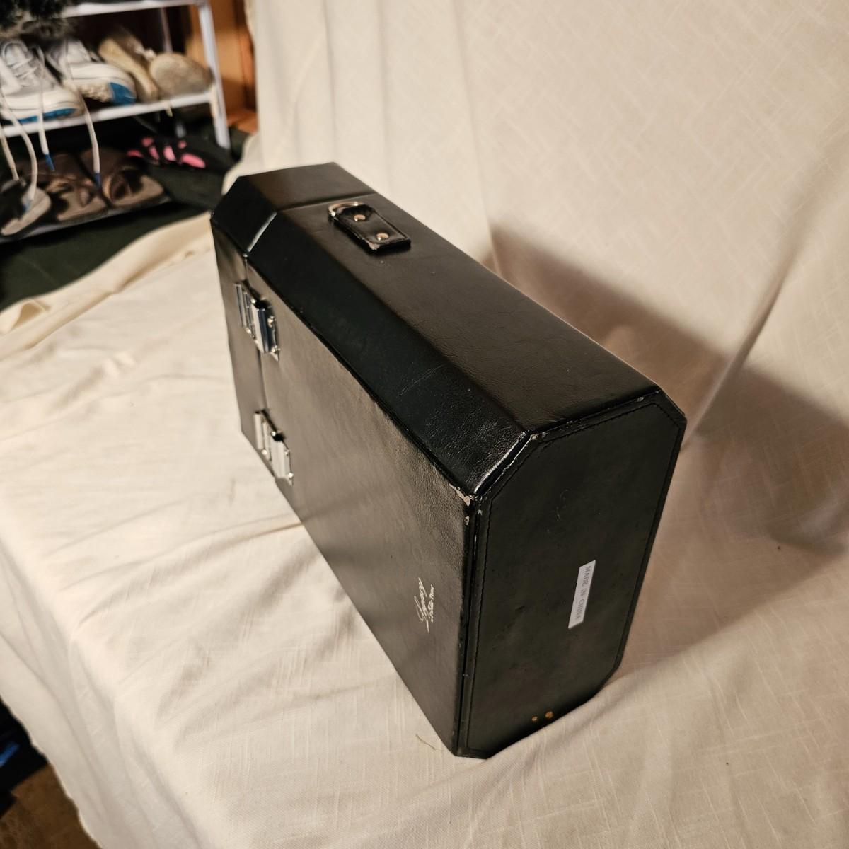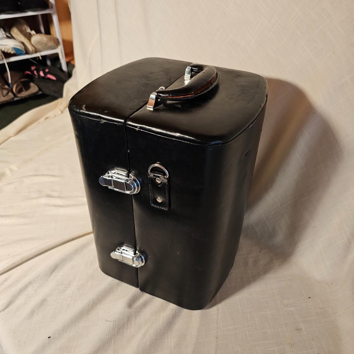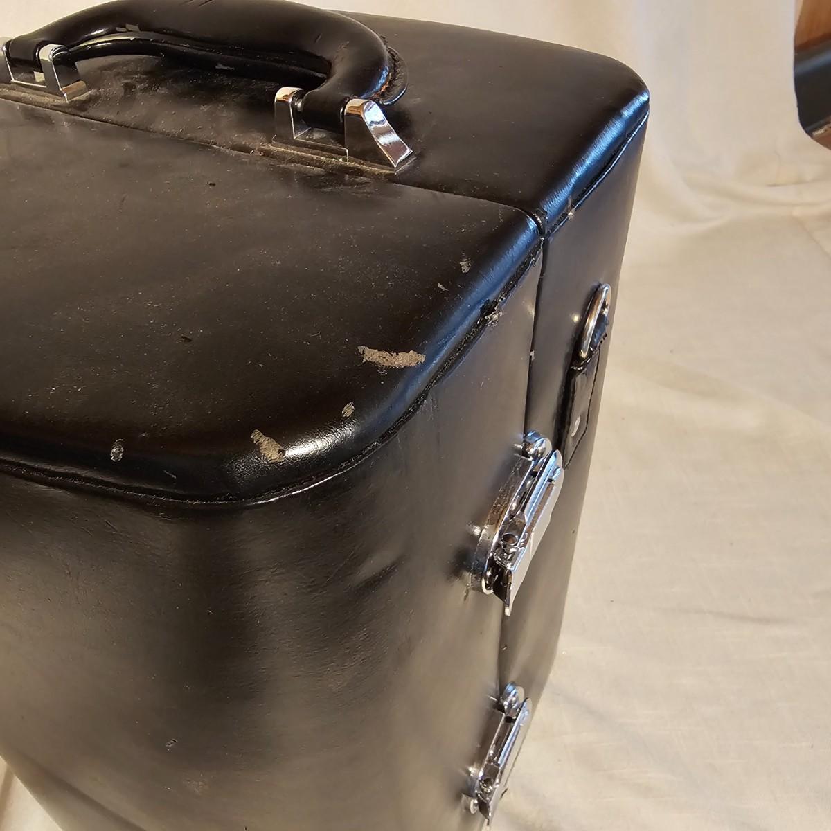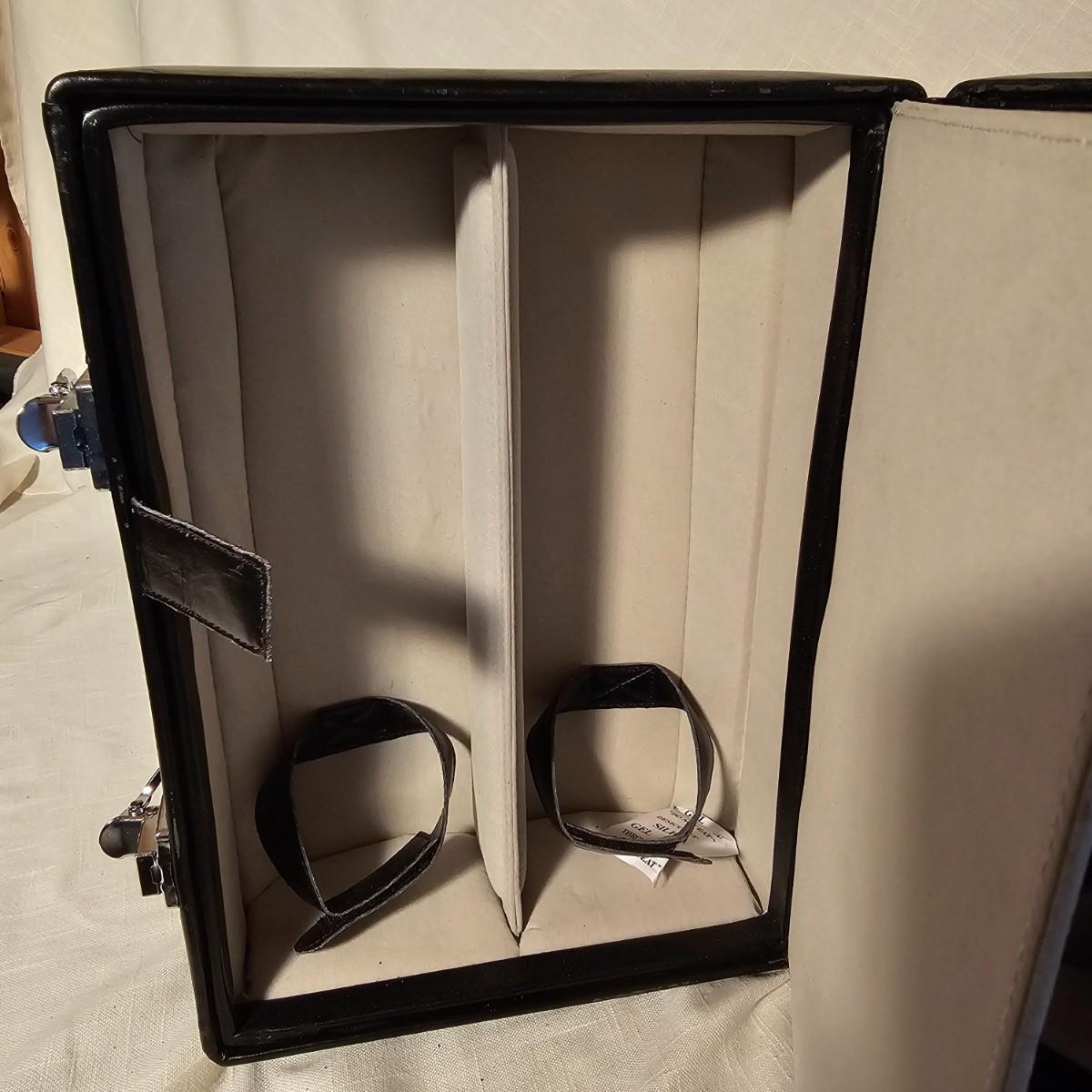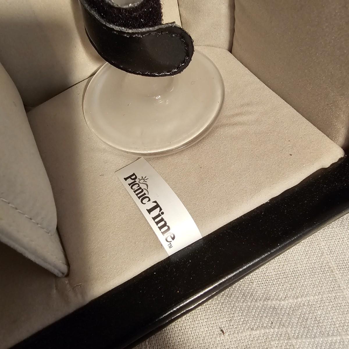 Three distinct cases for transporting and mixing your favorite potables or wine. Small brown case is labeled for specific liquors, has individual shot glasses for each. 7.5"x 3" x 9"H, slit in front of case. Double size case to hold two bottles by Picnic Time, measures 10" x 5" x 14"H. Has handle on top and also a carry strap. Slight nicks and rubs on case. Large case, also by Picnic Time, is a complete bar setup to go. Space for two bottles, spoon, strainer, mix cup and measuring cups. Measures 10" x 10" x 14"H, has handle and carry strap. Some nicks and tears also. See photos for details. Shipping available.