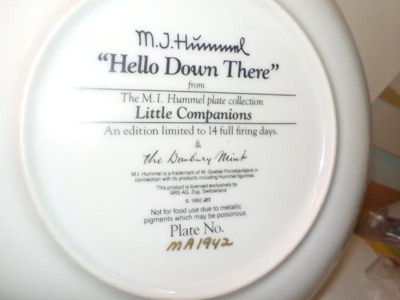 " M.J. Hummel Hello down there" Registered Danbury plate.