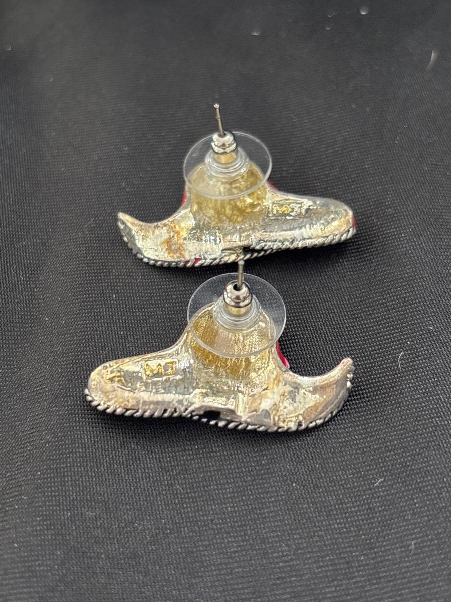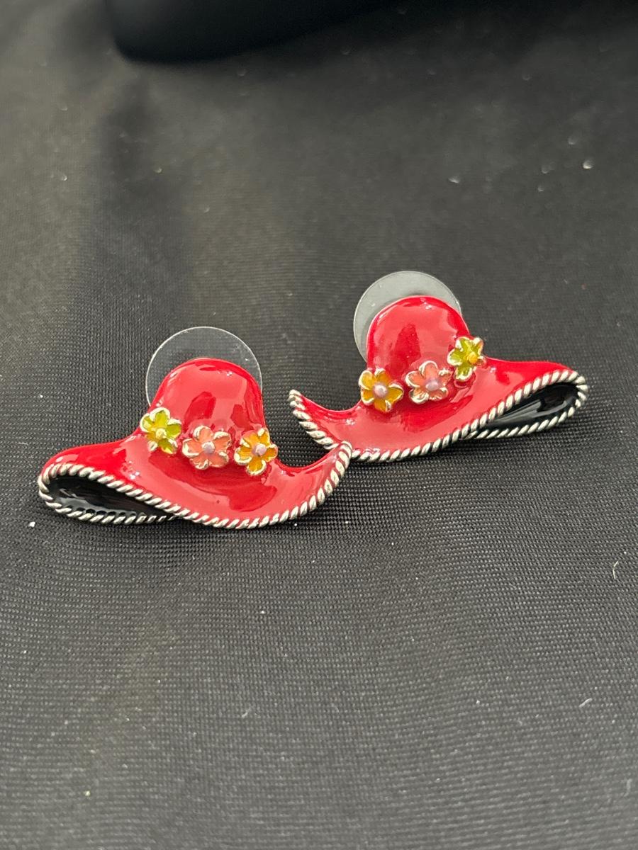 MJ marked red hat earrings