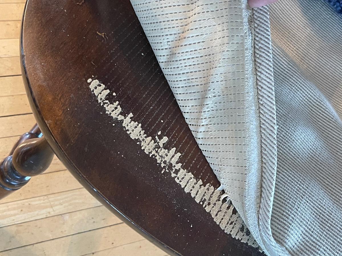 Rubber backing is adhering to chair.
